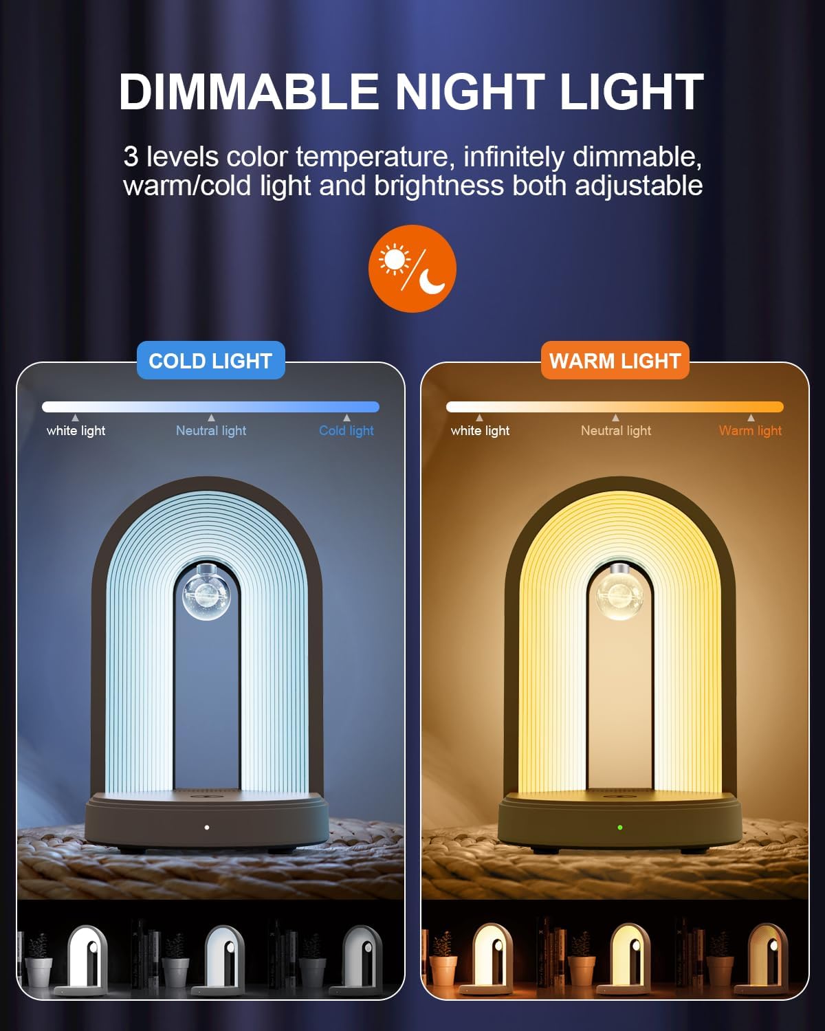 3-in-1 Night Light with Wireless Charger, Music Bedside Lamps with Bluetooth Speaker Phone Wireless Charger Touch Lamps for Nightstand Dimmable Table Lamp for Bedroom Desk Lamp Holiday Gifts