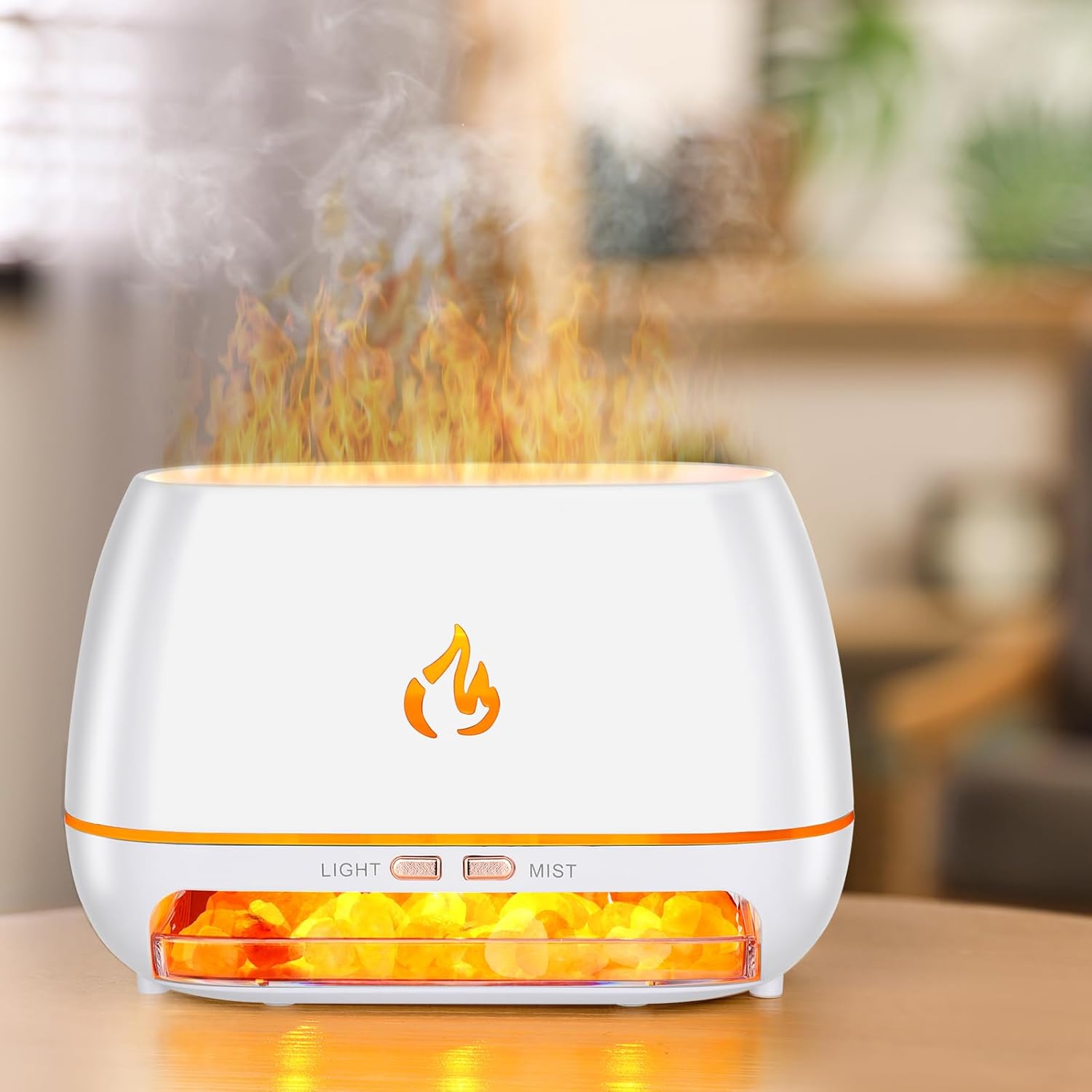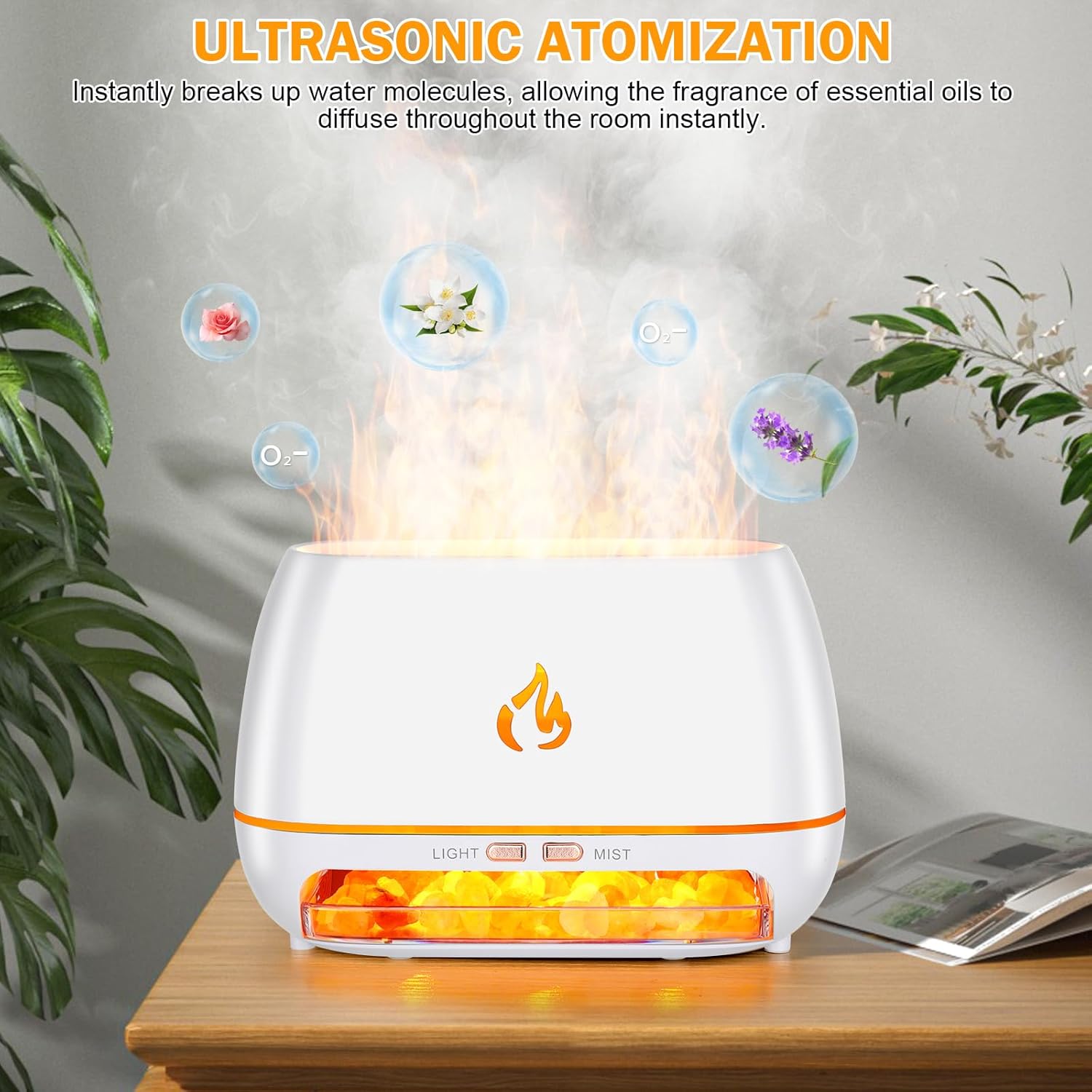【 Simulation Flame Diffuser】This product features intelligent LED lighting that collaborates with the mist to simulate a realistic flame effect. This distinctive feature illuminates your room with a warm, inviting light, adding a romantic ambiance. You can use the humidifying function and flame lighting separately, allowing it to double as a night light to provide a serene sleep experience.