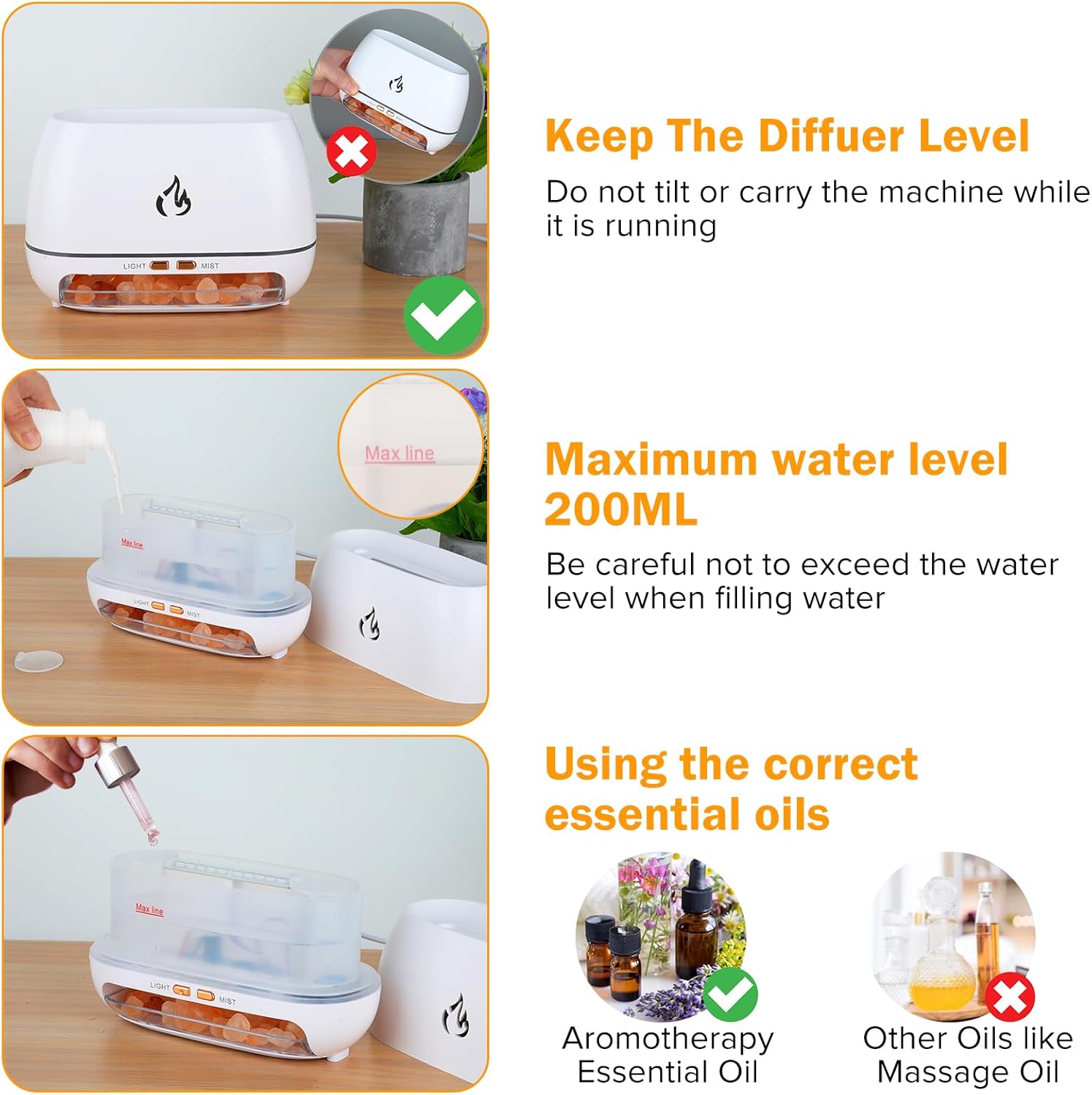 【Himalayan Salt Rock Scent Diffuser】The diffuser is also equipped with a package of Himalayan salt rock. You can place salt stones at the bottom or top of the aromatherapy machine, without blocking the mist outlet,By releasing negative ions to adsorb the dust particles in the air to improve the air quality and make breathing easier and healthier.
