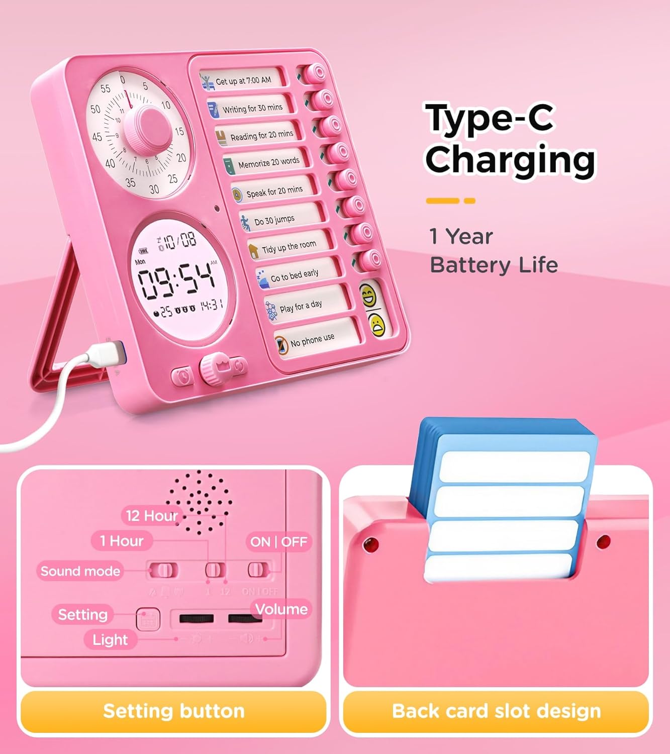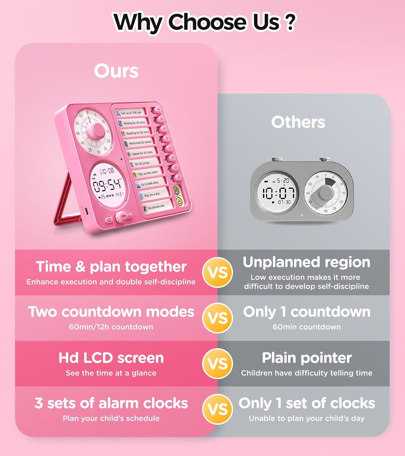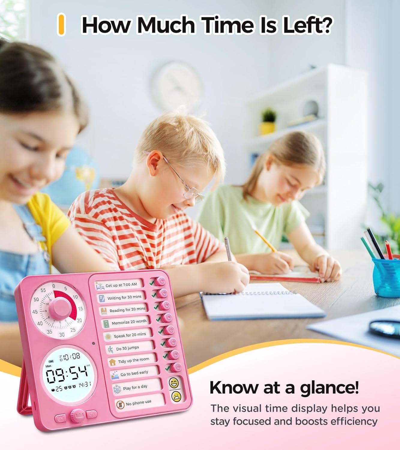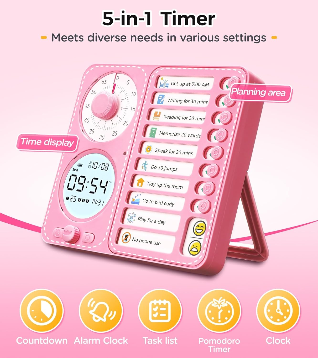 3-in-1 Visual Timer for Kids & Adults : This time management tool combines visual timer, digital clock, and chore chart, helping both kids and adults stay on schedule. Designed for kids with ADHD, ASD, and special needs, this productivity timer ensures a distraction-free, making it ideal for classrooms and study areas and home,building important planning skills