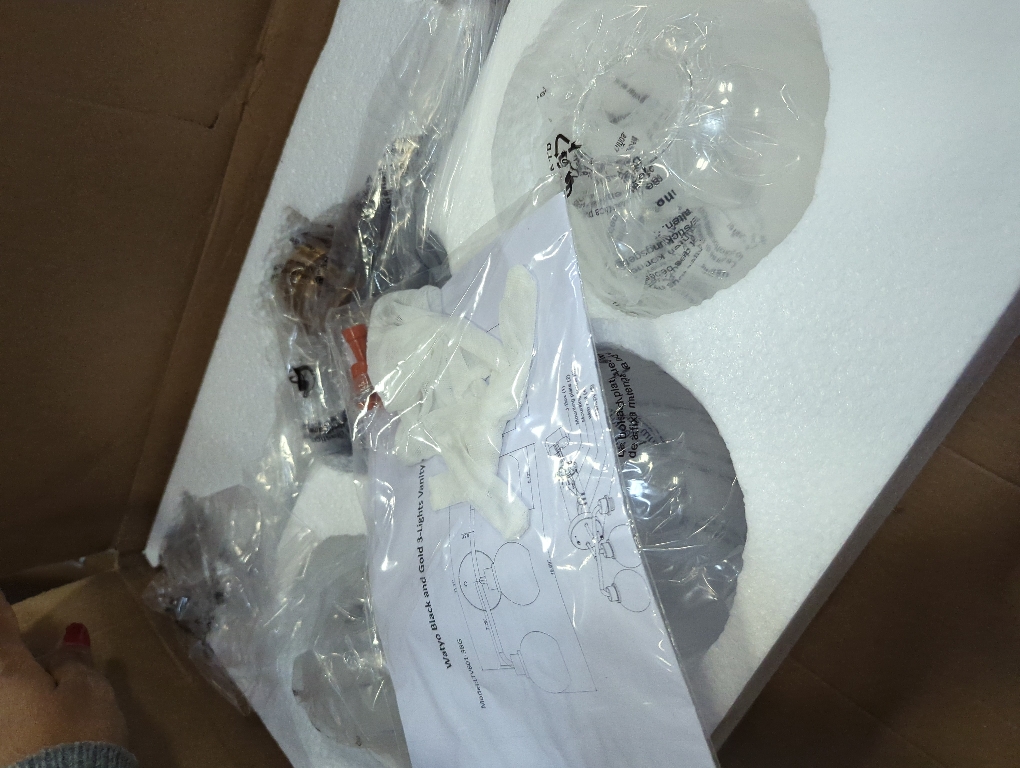 New Open for inspection Outstanding Design: The 3-light bathroom lights are constructed with an all-metal lamp body, including metal holding rings. This wall mount light finished in a black and gold stylish appearance! It accommodates 3 40W maximum bulbs, each of which is highlighted by a globe transparent glass shade to evenly distribute an inviting glow throughout your bathroom or powder room. Total 19.69 inch L x 6.96 inch W x 9.11 inch H, back plate diameter 5.12inch.