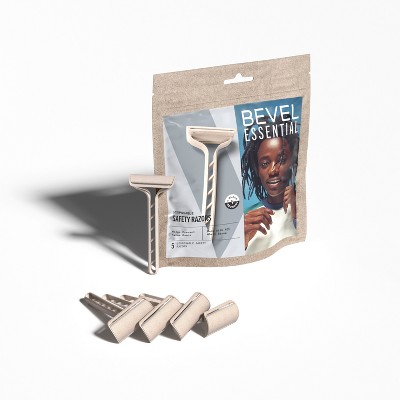 3 pack THE BEVEL DIFFERENCEThe Bevel Essential Disposable Safety Razor helps prevent nicks, tugs, and bumps by carefully removing hair from the skin’s surface. Our disposable razor handle is made with 45% wheat straw, a plant-derived alternative to common plastics. Preloaded with our stainless steel Bevel double-edge blades, the Bevel Core delivers the quality shave you expect in a convenient disposable form.
