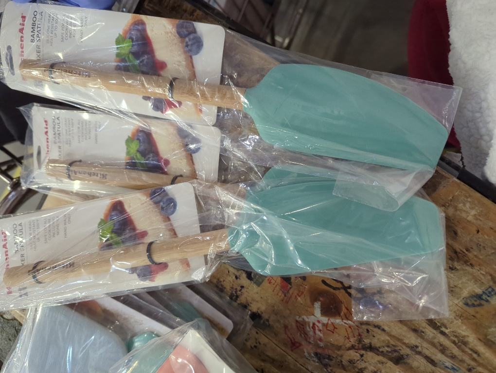 3 Pack...KitchenAid Bamboo Handle Mixer Spatula Aqua Sky