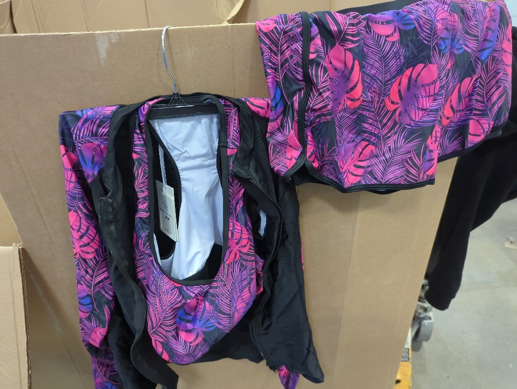 3 Piece Rash Guard for Women Large Purple and Black - Long Sleeve Swimsuits with Shorts SPF