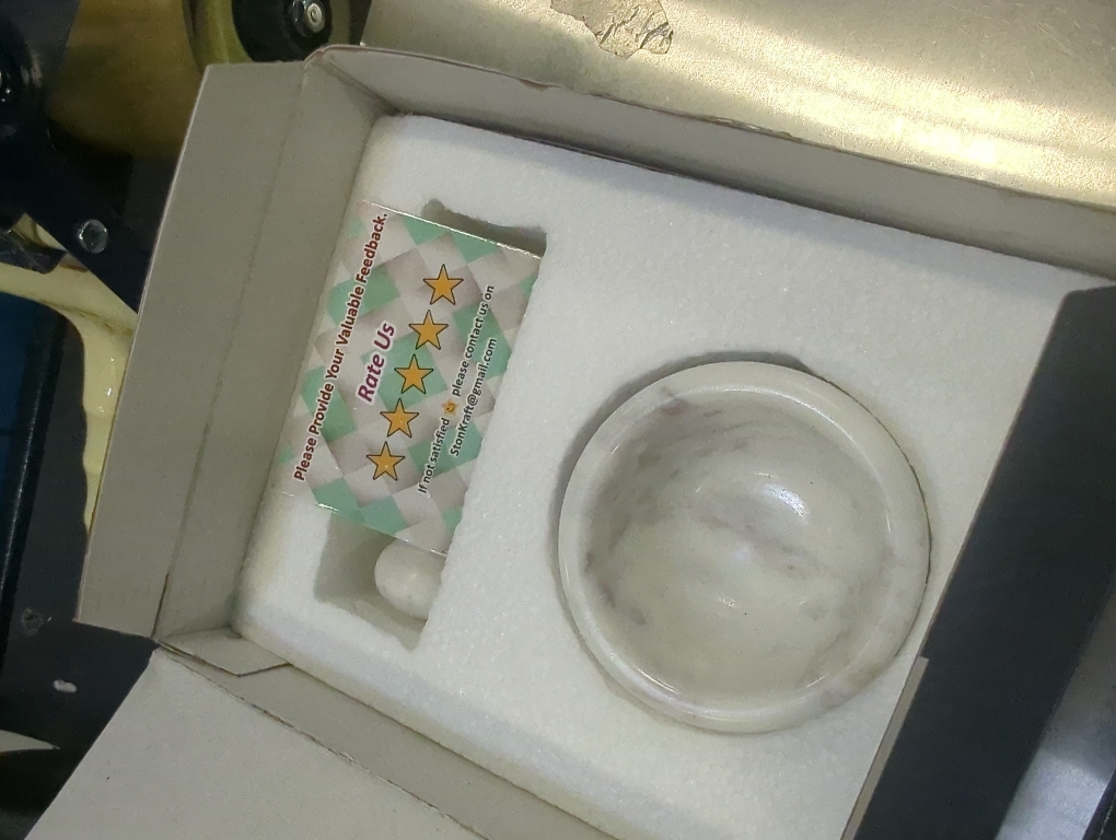 New open for inspection....3" Small Natural Stone Mortar and Pestle Set as Spice, Medicine Grinder Masher - kharad, Khallad, Okhli and Musal (White)