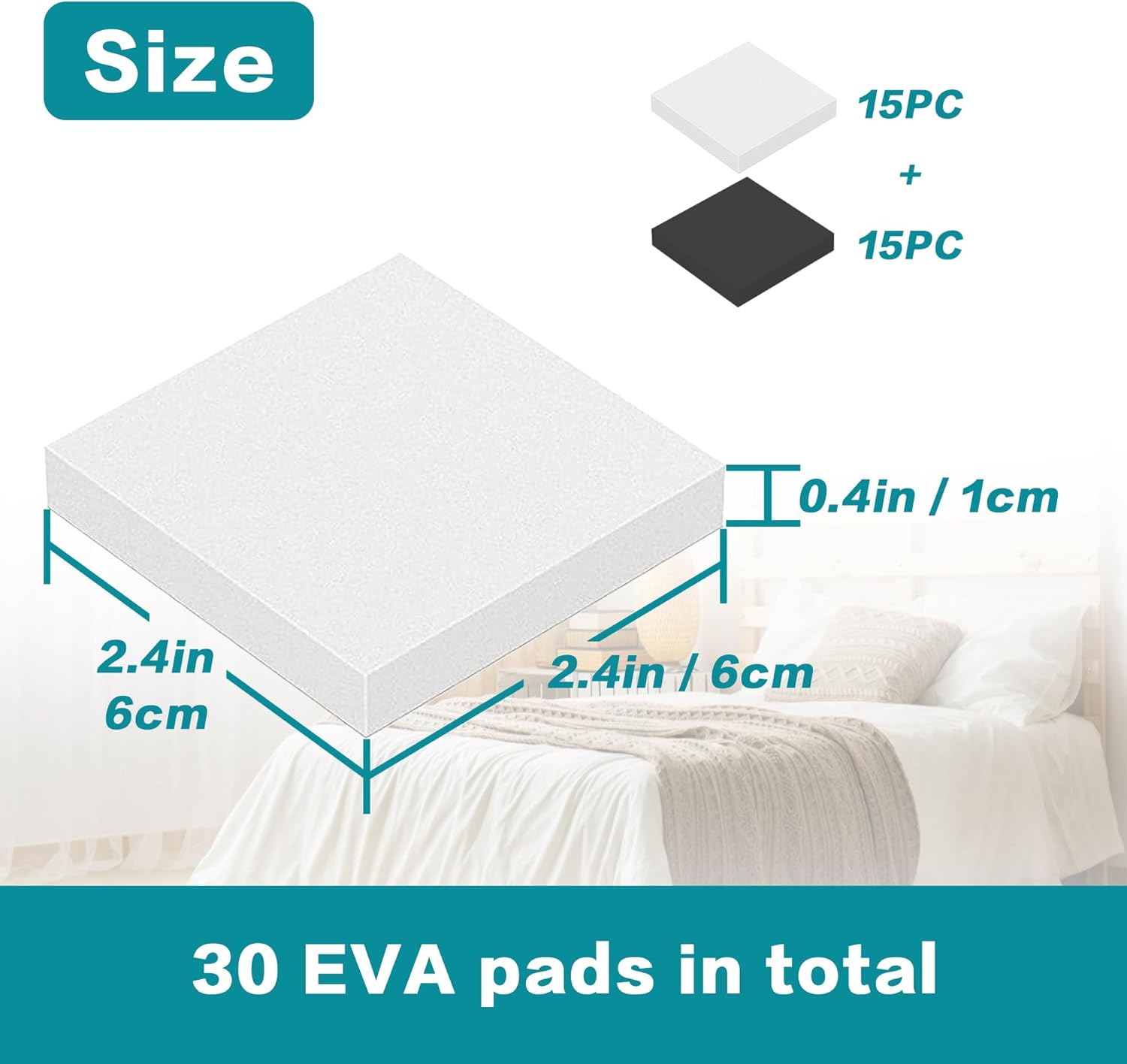 What You'll Get: Receive 30 square headboard pads, with 15 in white and 15 in black. Each pad is 2.36 inches in side length and 0.4 inches thick.