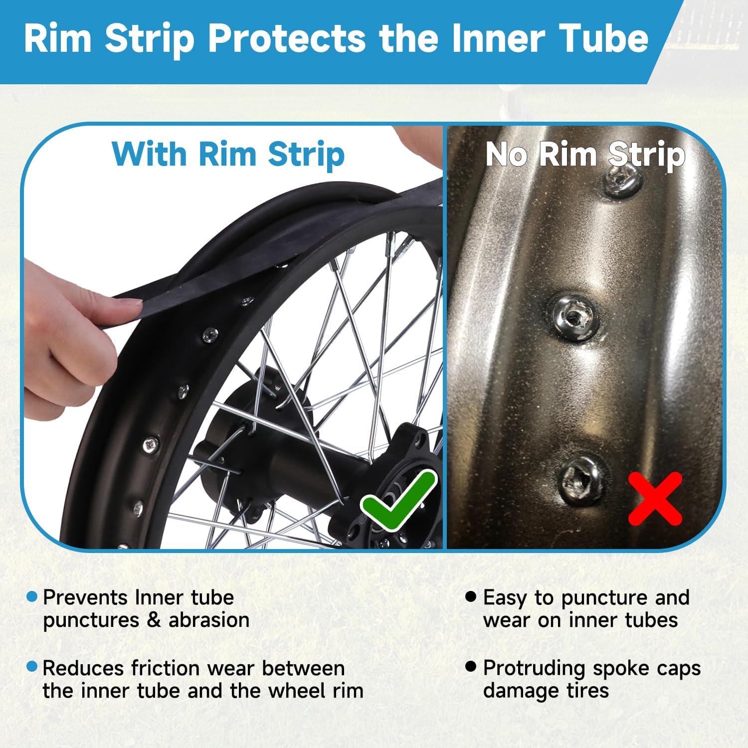 Features: Our 428 41T chain sprocket is made of high-quality steel for long time use and it can significantly improve traction, suitable for off-road use, mud, sand, rocky trails. This disc brakes rotor provide more direct friction contact, braking response is faster, suitable for high-speed or frequent braking scenarios. The rim strip protects the inner tube from punctures by covering the sharp edges of spoke holes and rim seams and reducing friction between the inner tube and the rim