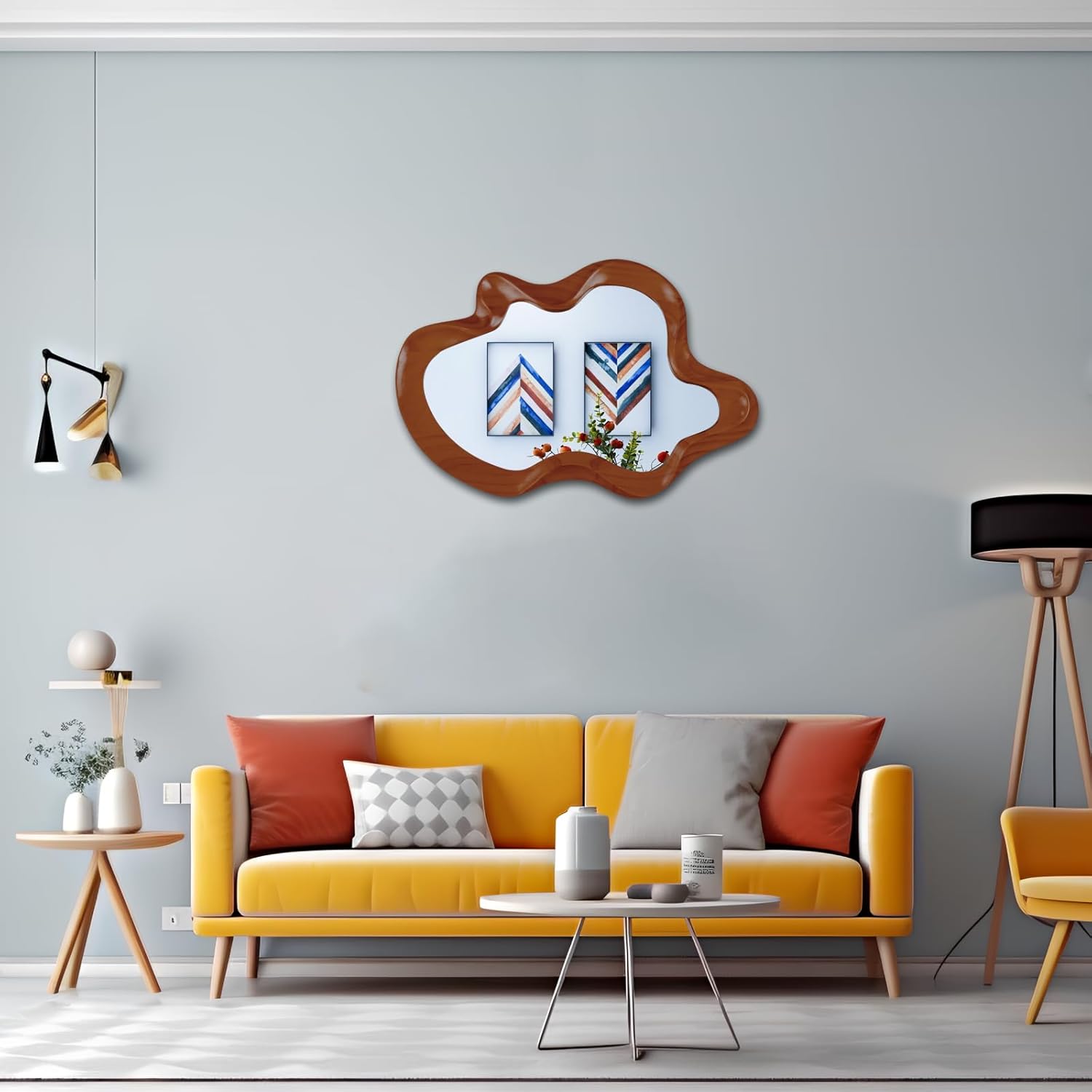 Distinctive modelling design: The peculiar shaping wooden frame design highlights the charm of the custom-fit living room. This irregular wall mirror is your perfect choice for improving the sense of home design.