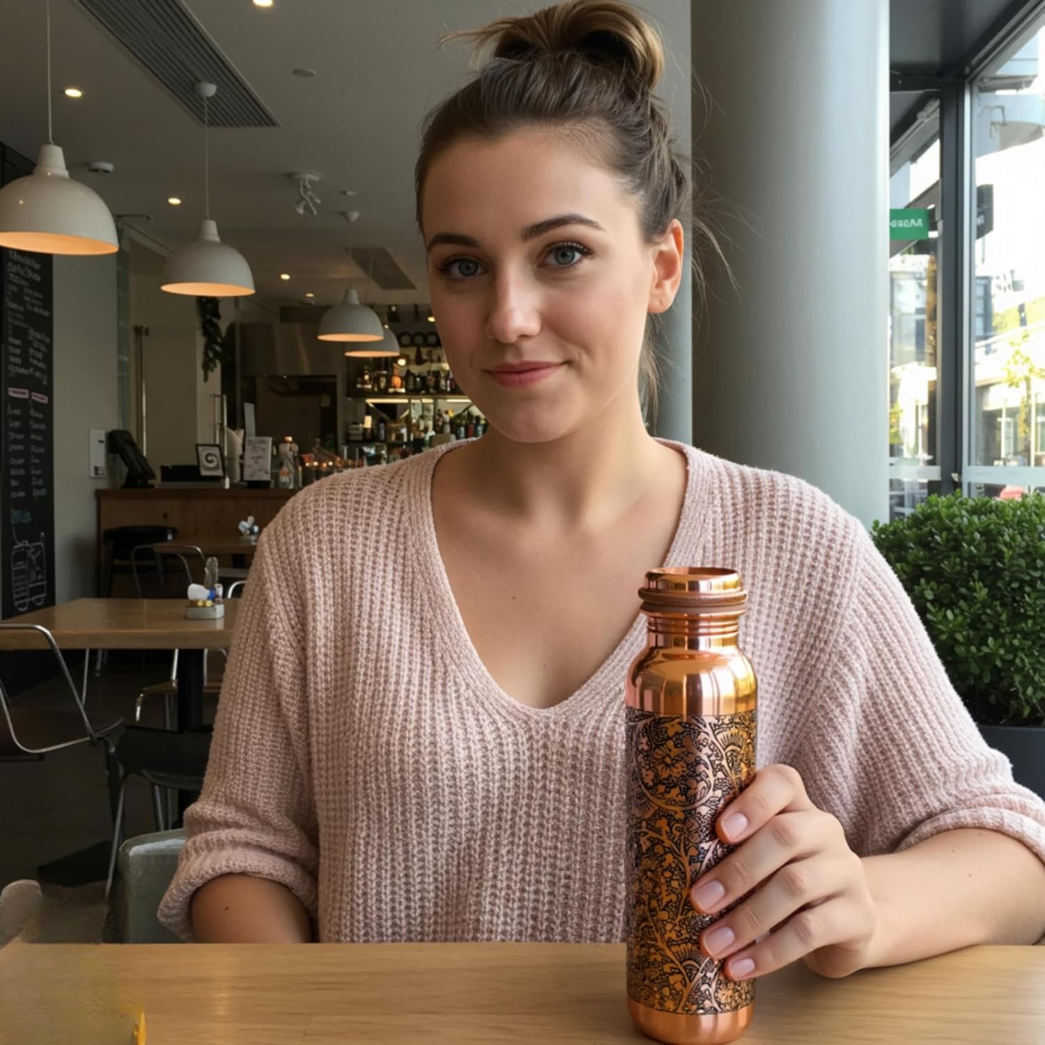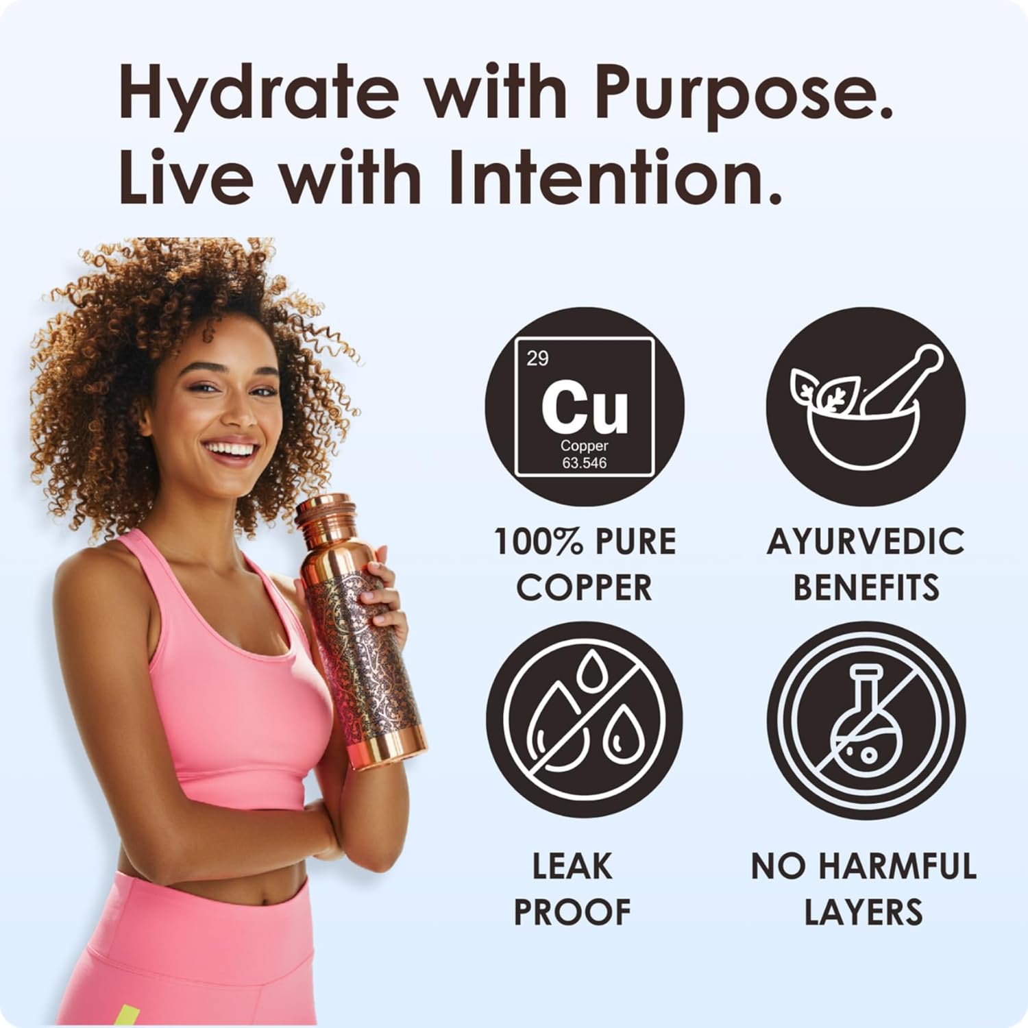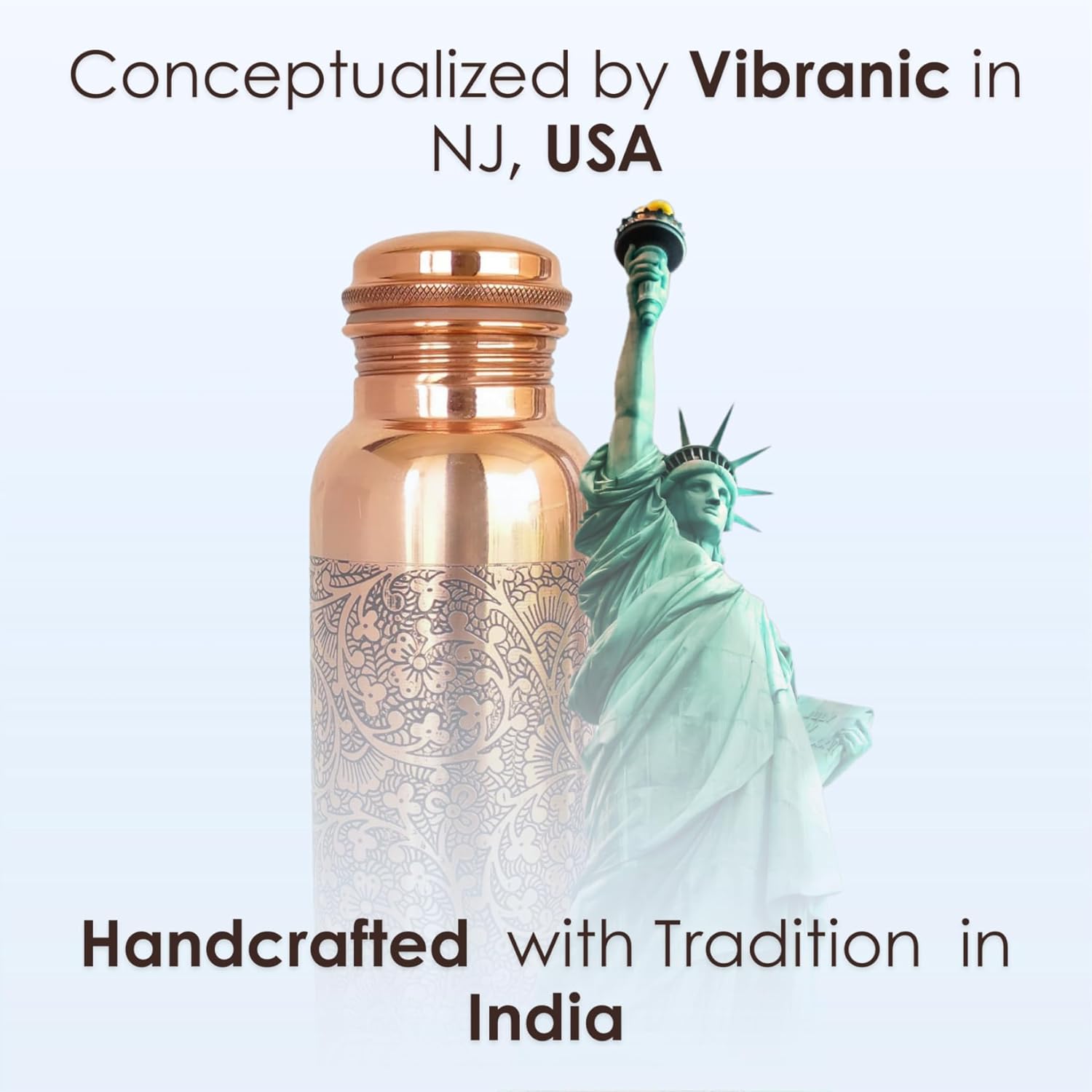 PREMIUM CRAFTSMANSHIP: Pure copper bottle handmade in India. 100% leakproof design.