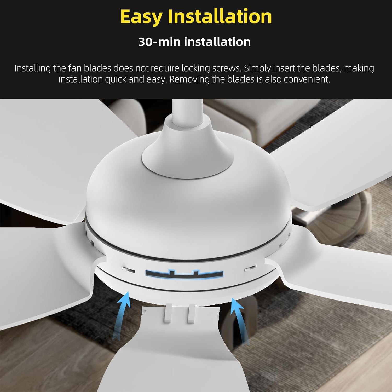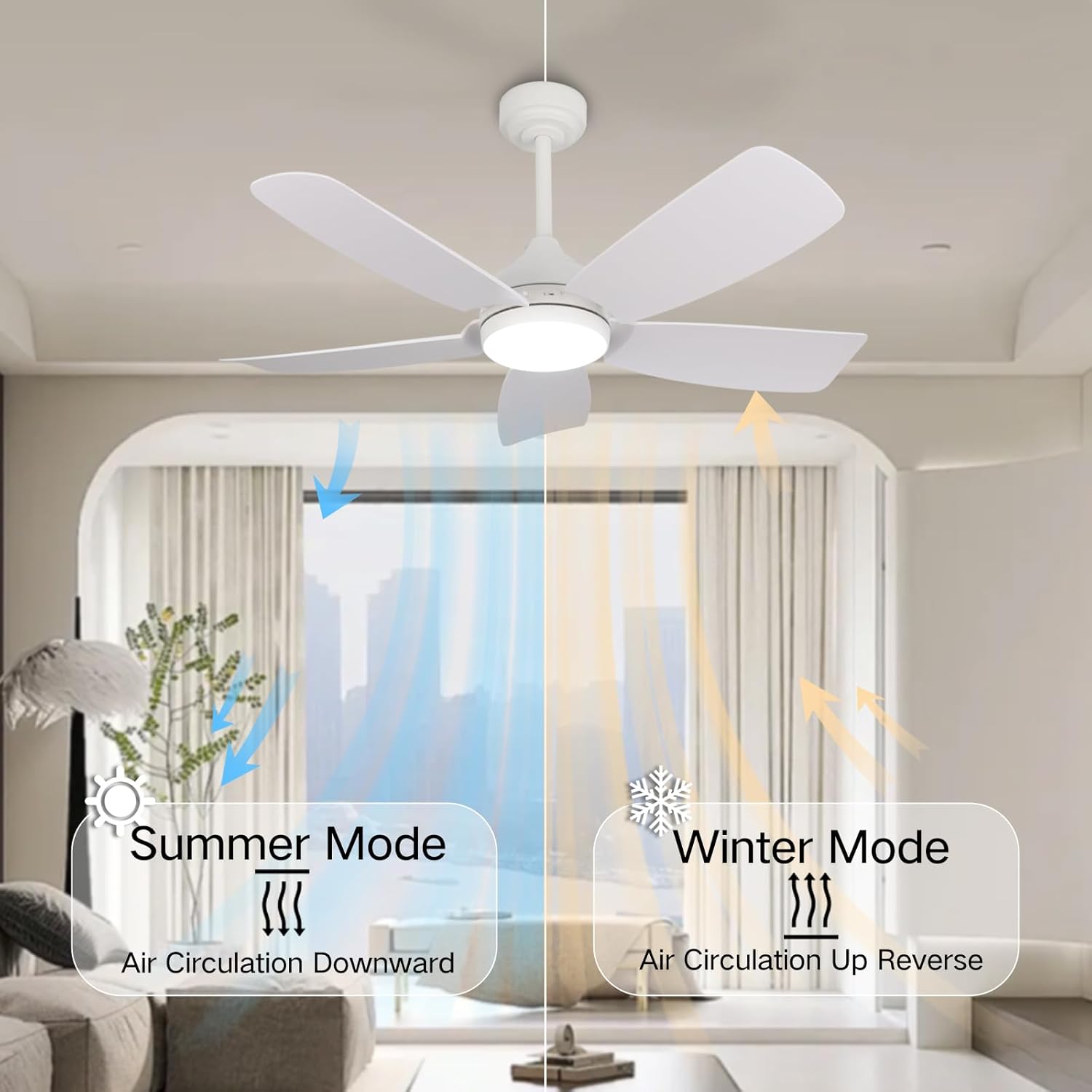 36 inch Ceiling Fan with Light and Remote Control,White 5 Blade Modern Ceiling Fans for Living Room Bedroom Farmhouse indoor, Quick-Install,Reversible DC Motor, Dimmable, 6 Airflow & 3 Light Colors