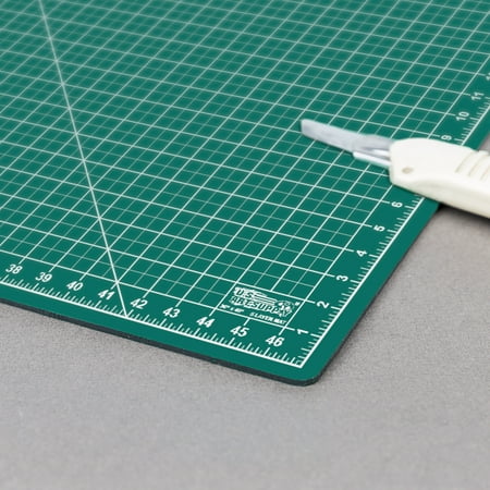 Durable 5-Ply Self Healing Construction 1/2" grid with 1/8" marks for precise alignment as well as 45° and 60° guides. The green/black mats are reversible with grid markings on each side.