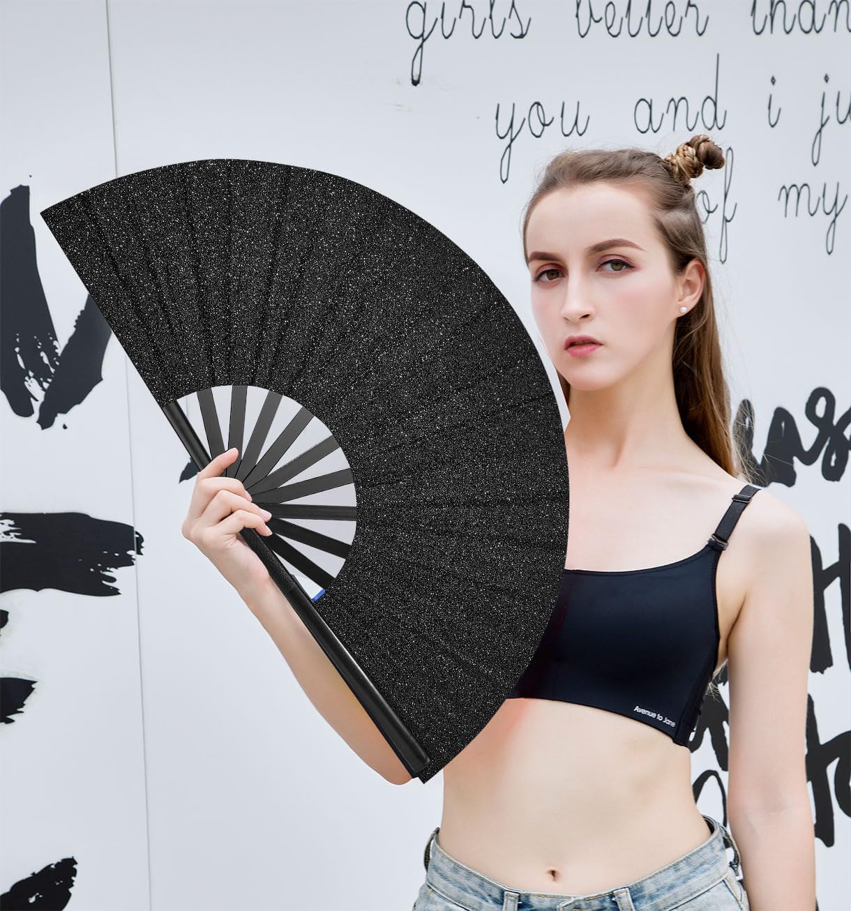 3. 3PACK...Amajiji Rave Fans, Large Folding Hand Fan Popping Fan for Line Dancing, Big Clacking Fans Clap Fans Festival Fans Foldable for Boots On The Ground Dance,Music Festival, Party (Black)