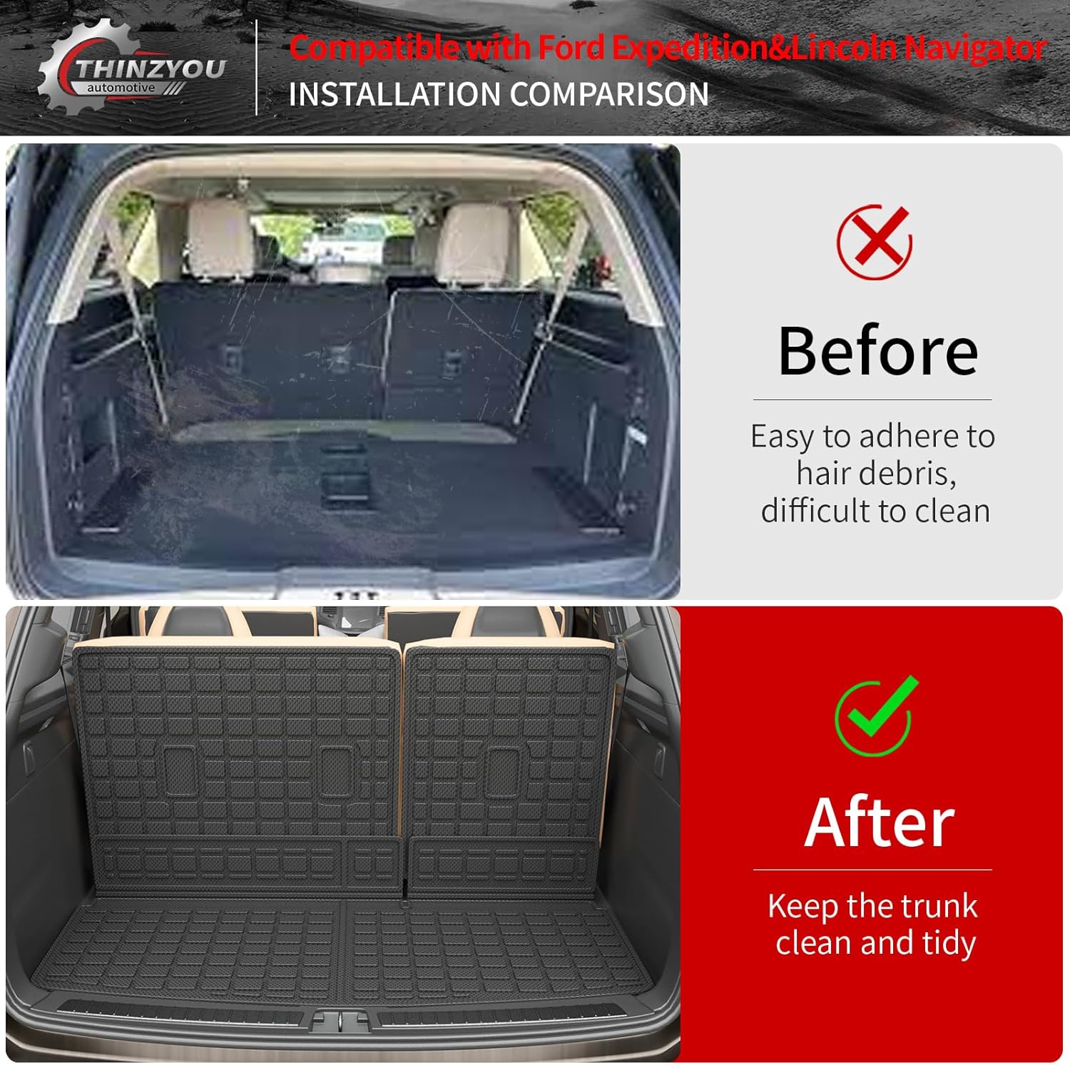 Fitment: According to the original car, our cargo mat and backrest mats are designed for 2018 2019 2020 2021 2022 2023 2024 Ford Expedition & Lincoln Navigator. NOTE: NOT FIT Ford Expedition MAX & Lincoln Navigator L Models. Please check the model of your car carefully before purchasing.