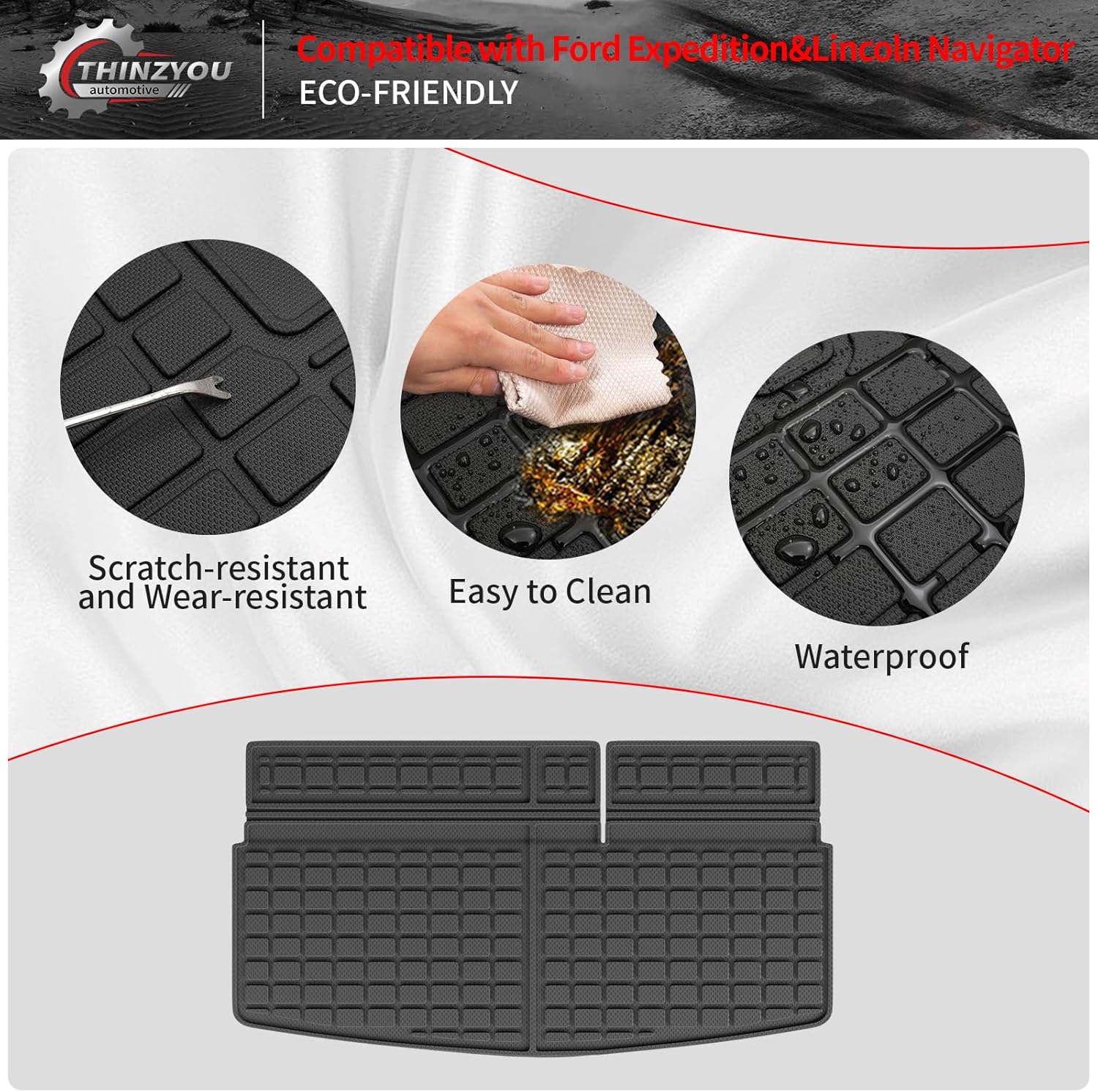 3pb Black Cargo Mat Compatible with 2018-2024 Ford Expedition Lincoln Navigator (Not for Max or L Models) Cargo Liner Trunk Liner TPE 2023 Expedition 7&8 Seats Accessories (Trunk Mat Backrest Mats)