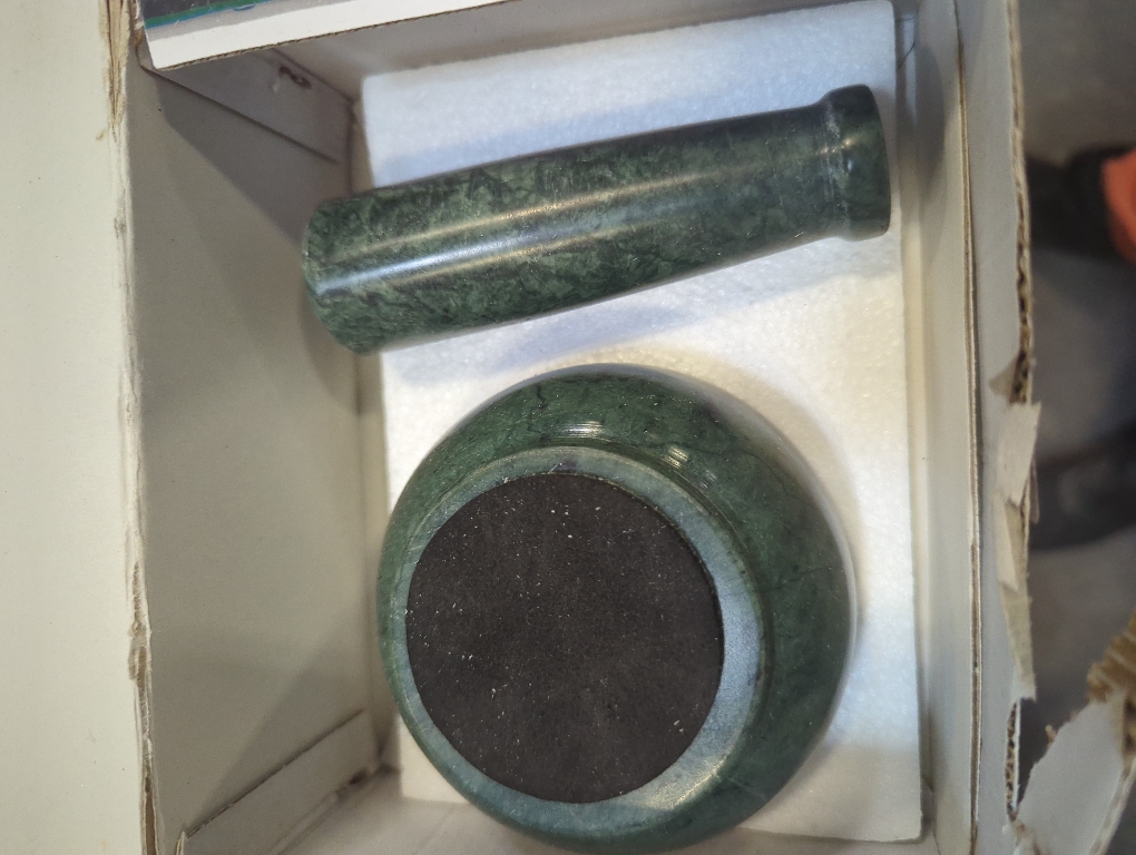 Use it for grinding and crushing herbs, spices or medicine. It is non-porous, natural and very durable.