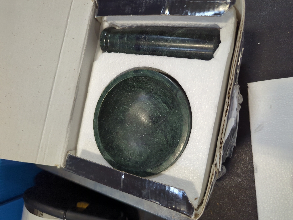 Use it for grinding and crushing herbs, spices or medicine. It is non-porous, natural and very durable.