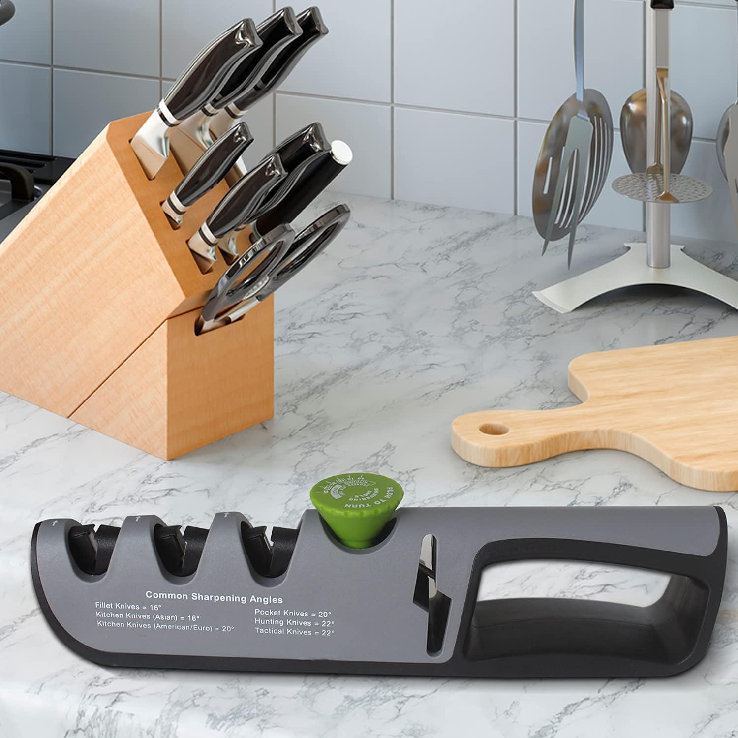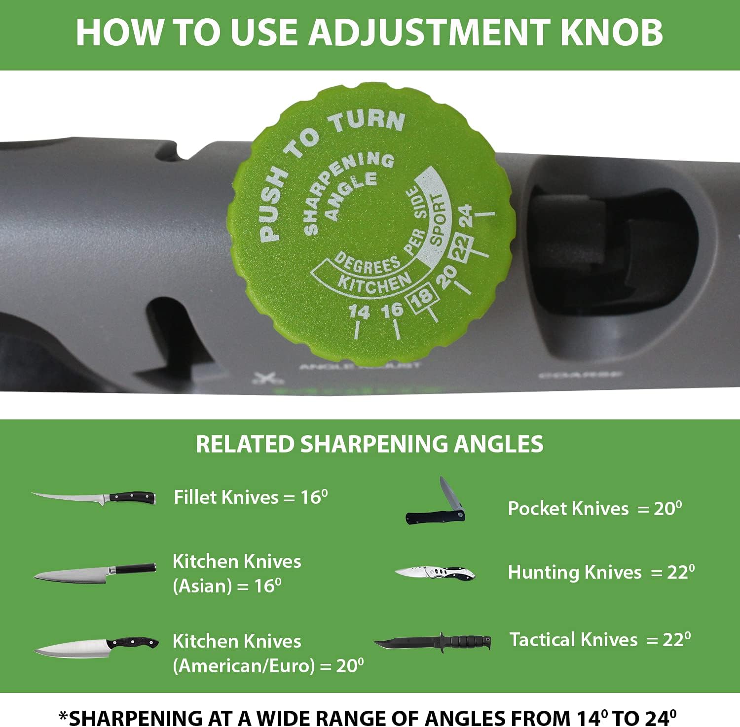 【 ADJUSTABLE SHARPENING ANGLE 】: Easy adjust knob allows sharpening at a wide range of angles from 14 -Degrees to 24-Degrees to fit all kinds of knives .