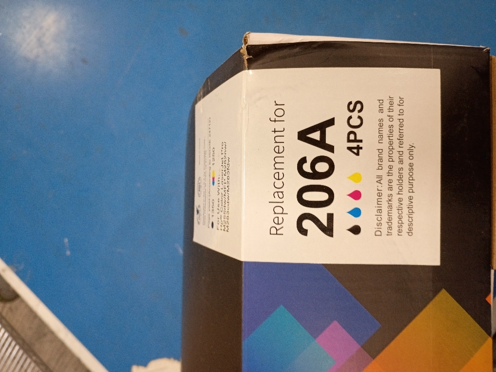 Package contents: 4-Pack Replacement for 206a toner cartridges hp set with chip for 1x 206A Black toner-W2110A, 1x 206A Cyan toner-W2111A, 1 x 206A Yellow Toner-W2112A, 1 x 206A Magenta Toner-W2113A, total 4 packs 206a hp206a toner cartridges set