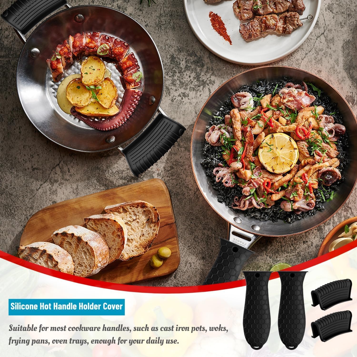 3. 4 PCS Silicone Hot Handle Holder Cover Cast Iron Handle Cover Silicone Pot Holders Heat Resistant Assist Pan Handle Sleeve Non-Slip Pot Handle Covers for Cast Iron Skillet Metal Pan(Black)