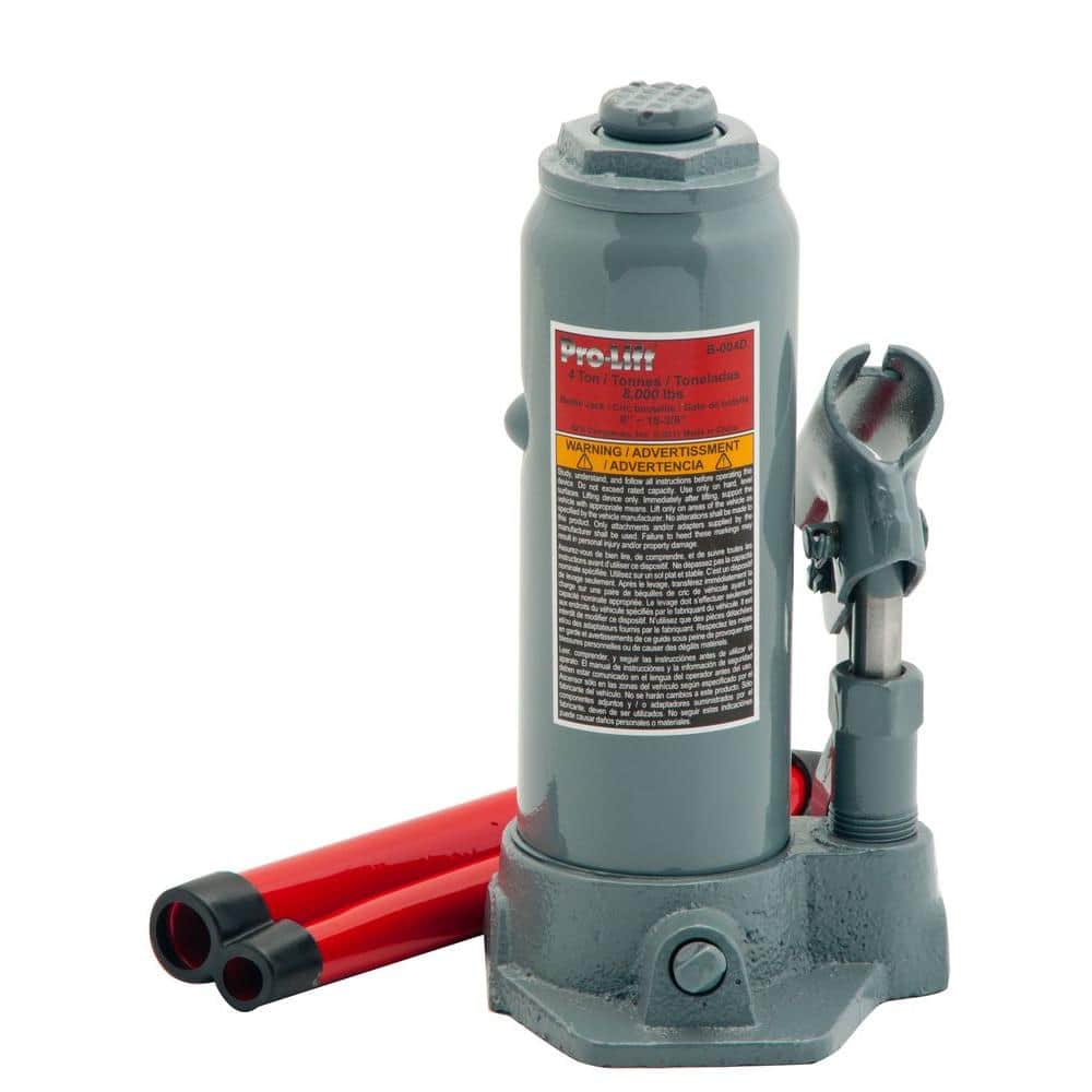 This versatile bottle jack is a great addition to any garage and home. The adjustable saddle sets the jack into the perfect position before each lift. The patented design was built with speed and safety in mind.. Features: Rust Resistant. Frame Material: Steel. General Part Type: Bottle Jack. Included: No Additional Items Included. Material: Steel. Maximum Lift Height (in.): 16 in. Mechanism type: Hydraulic. Minimum Lift Height (in.): 16. Product Weight (lb.): 9.00 lb. Returnable: 90-Day. Saddle Diameter (in.): 1. Weight Capacity (lb.): 8000 lb. Base Length (in.): 4. Base Width (in.): 4.25. Collapsed height (in.): 8.00. Handle Length (in.): 14.75. Product Depth (in.): 4.49 in. Product Height (in.): 9.41 in. Product Width (in.): 4.37 in. Maximum Lift Height (in.): 16 in. Mechanism type: Hydraulic. Handle Length (in.): 14.75. Collapsed height (in.): 8.00