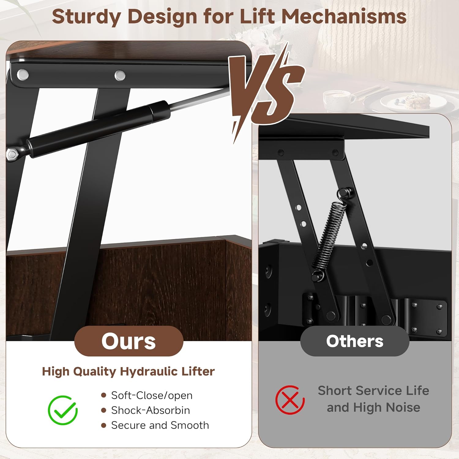 【Sturdy and Durable Structure】Our Iift top coffee table adopts metal gas support mechanism, better than the traditional compression spring to make the table easy to lift, no noise. With wooden construction and selected materials, to ensure durability and stability, and will not shake or tilt during use. MDF thicker board and thicker frame ensure stability and durability for years of use.
