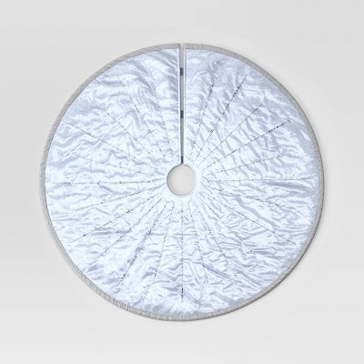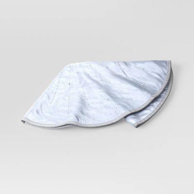 Complete your tree’s look with this 48-inch Velvet with Embroidered Sequin Starburst Christmas Tree Skirt from Wondershop™. Made from polyester, this velvet Christmas tree skirt has an icy blue surface adorned with an embroidered sequin starburst design in shiny silver. It features a 48-inch round silhouette that easily drapes around the base of your tree and secures with hook-and-loop fastening. Decorative and functional, the fabric tree skirt provides a lovely foundation for your gifts while concealing the tree stand and catching falling ornaments or pine needles.Welcome to the Wondershop™.