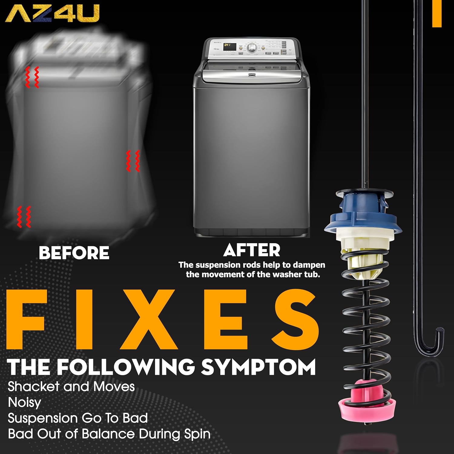 ✔️ Package include: 4 x Washer Suspension Rod as the picture. Perfect replacement: this is aftermarket replace W10440786 AP5306960, W10368626, W10368627, W10440739, PS3502193 for Whirlpool, Maytag Top Load Washer.