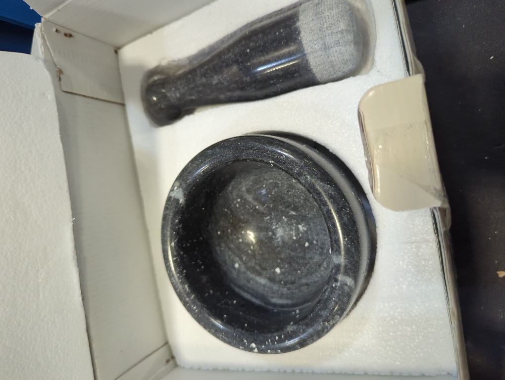 Use it for grinding and crushing herbs, spices or medicine. It is non-porous, natural and very durable.