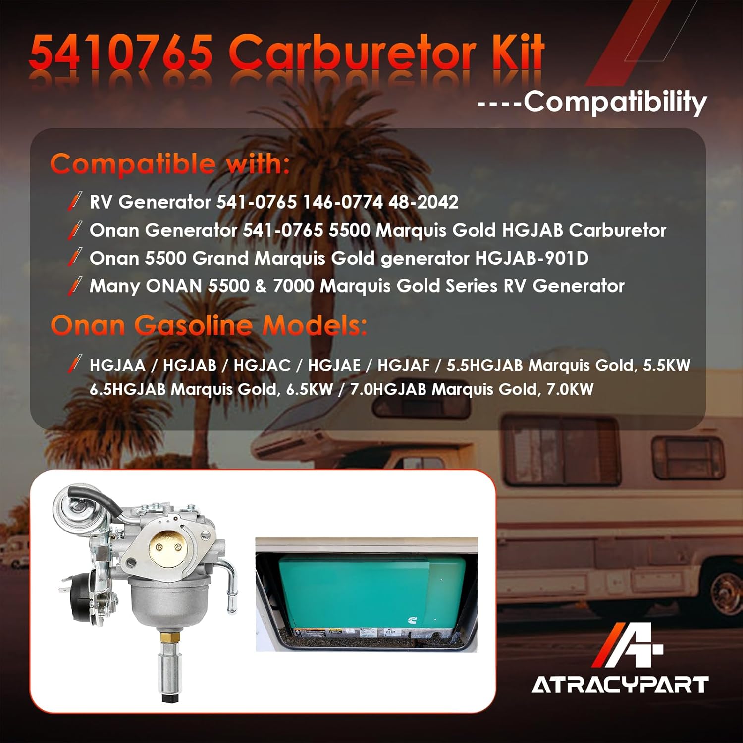 5410765 Carburetor Kit Compatible With Onan 5500 7000 Grand Marquis Gold Generator HGJAA HGJAB-901D HGJAB-900 5.5HGJAB-6755K With Mounting Gaskets Fuel Filter, Replace# 541-0765, 146-0774, 141-0983