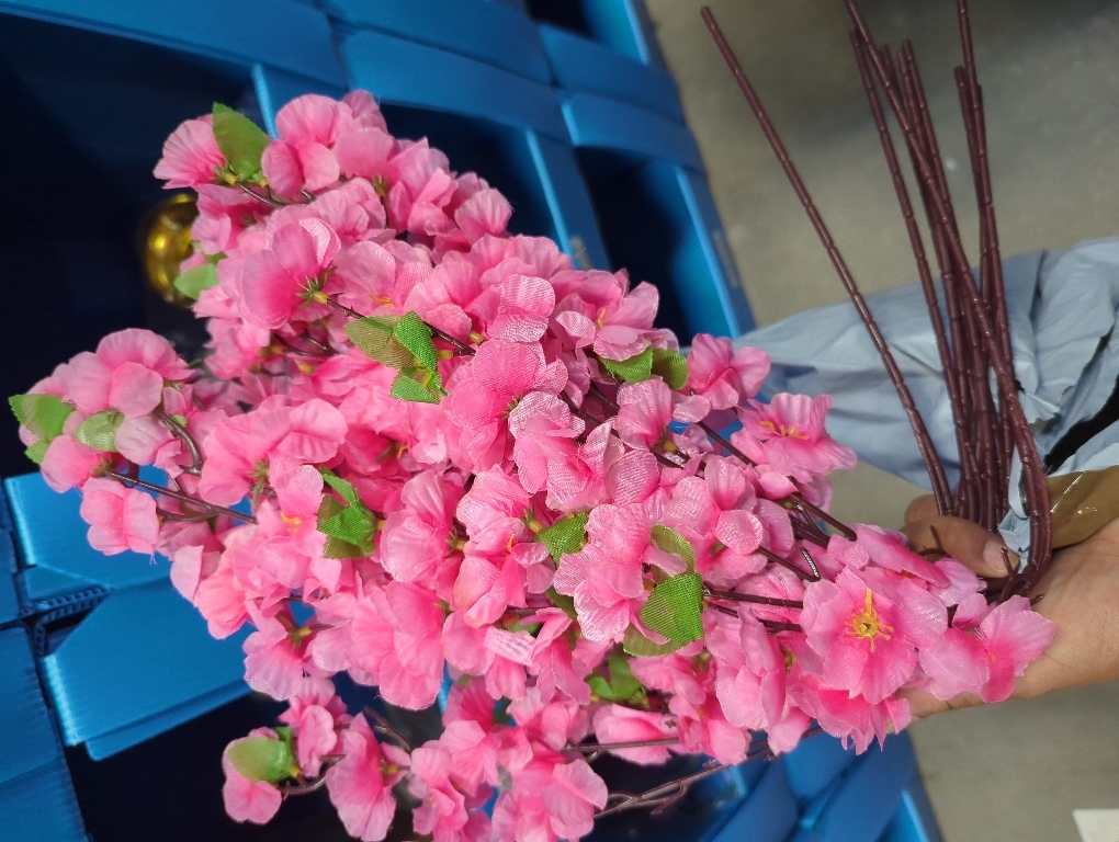 Artificial cherry blossom branches are made of silk, plastic and iron wire, you can bend or cut to get the look you want.