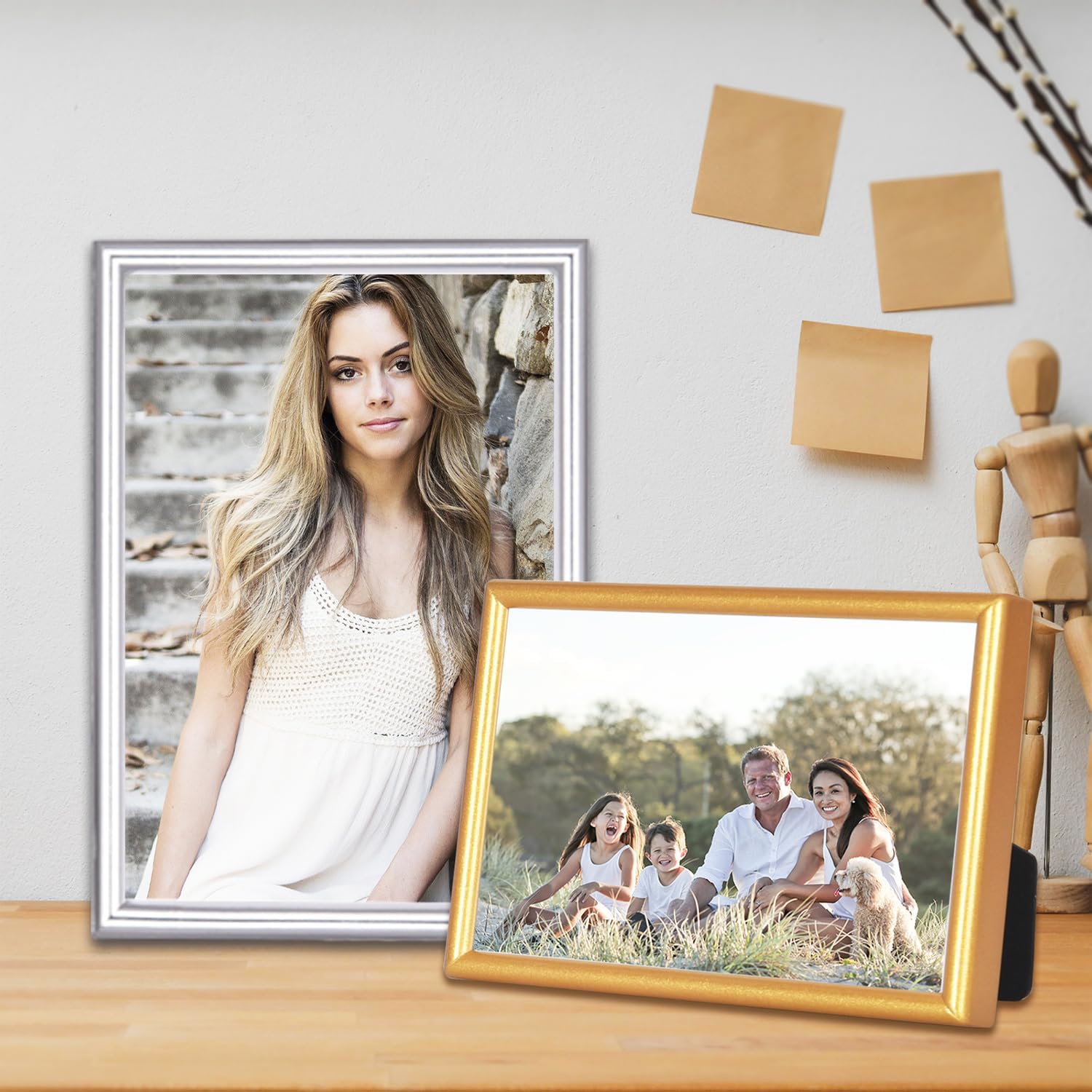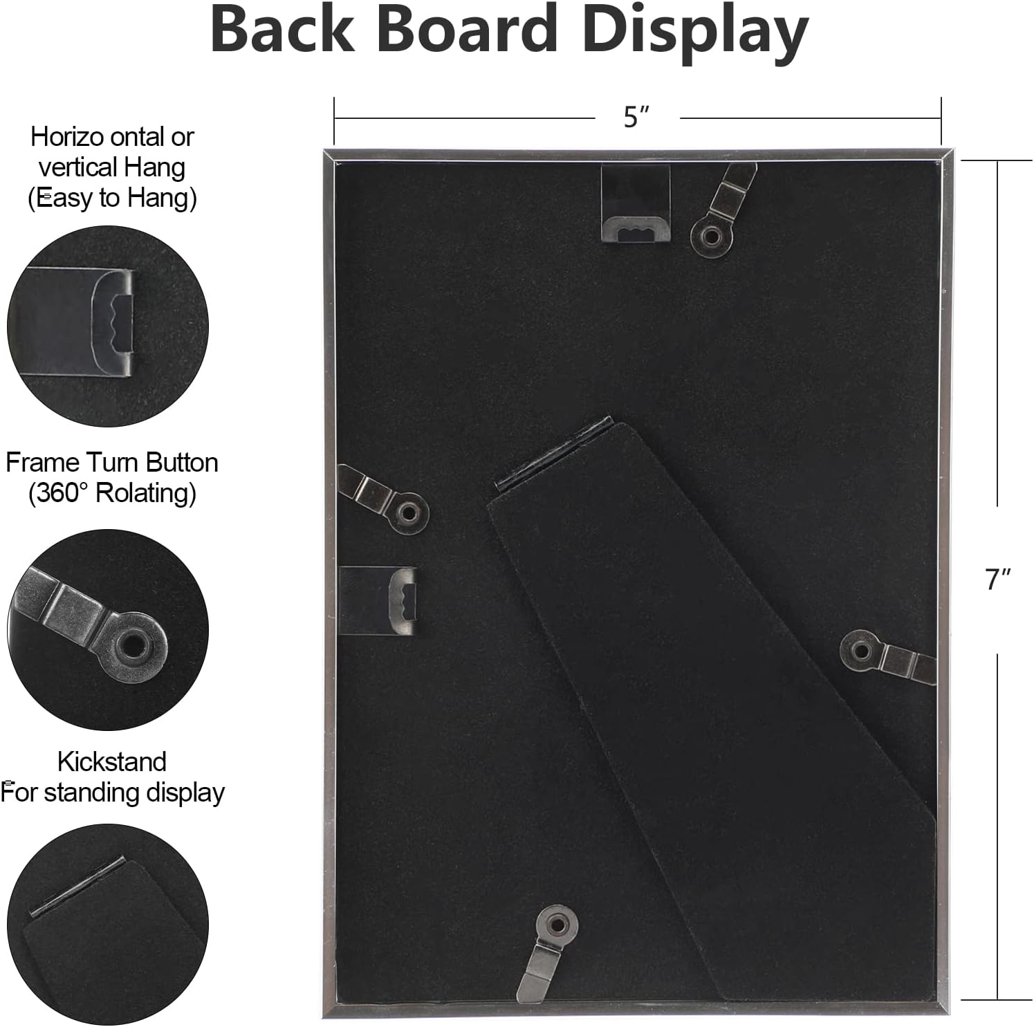 5x7 Picture Frame Set of 2, Silver Brushed Modern Simple Thin Aluminum Metal Photo Frame with HD Real Glass, Display for Tabletop and Wall Collage, 2 Pack