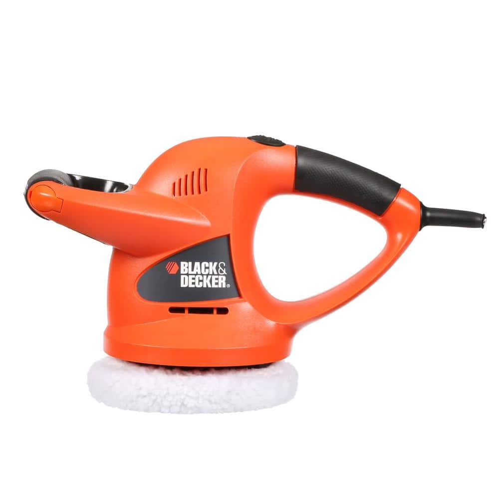 The BLACK DECKER Random Orbit Waxer/Polisher is ideal for buffing your car, truck, boat or motorcycle to a beautiful shine. 2 handles help you hold it steady, polish longer and feel less fatigue. At 4400 orbits per minute, you're ensured a swirl-free finish. Includes a foam applicator bonnet and 2 wool polishing bonnets.. Amperage (A): 0.5 A. Arbor Size: 0. Color Family: Orange. Condition: New. Cord Length (ft.): 10 ft. Corded Tool Type: Polisher. Cordless/Corded: Corded. Maximum Speed (RPM): 4400 RPM. Power Tool Features: Random Orbit. Product Weight (lb.): 3.6875 lb. Random orbit: Yes. Returnable: 90-Day. Switch Type: On/Off. Tools Product Type: Power Tool. Variable Speed: No. Certifications and Listings: CSA Listed. Product Depth (in.): 12 in. Product Height (in.): 8 in. Product Width (in.): 6 in. Cordless/ Corded: Corded. Features: Random Orbit. Cordless/Corded: Corded. Corded Tool Type: Polisher