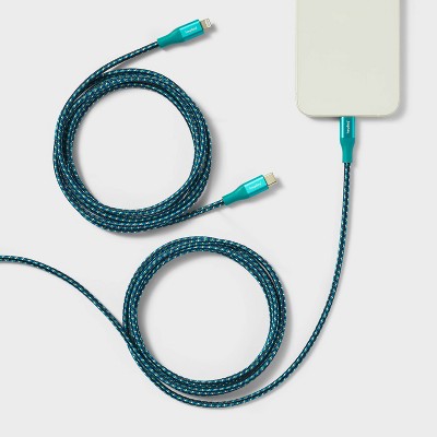 6' Lightning to USB-C Braided Cable 2pk - heyday™ Ocean Teal
