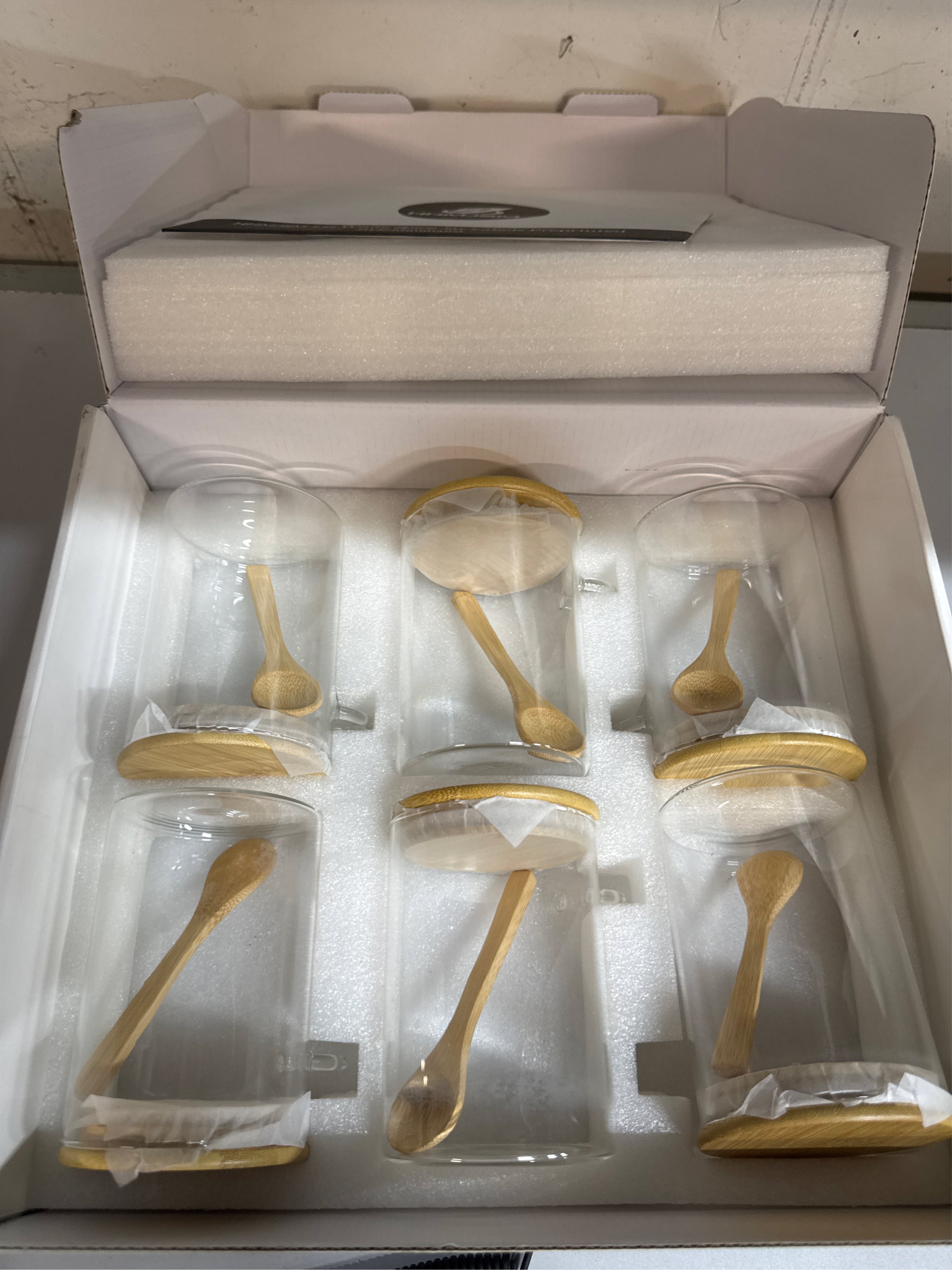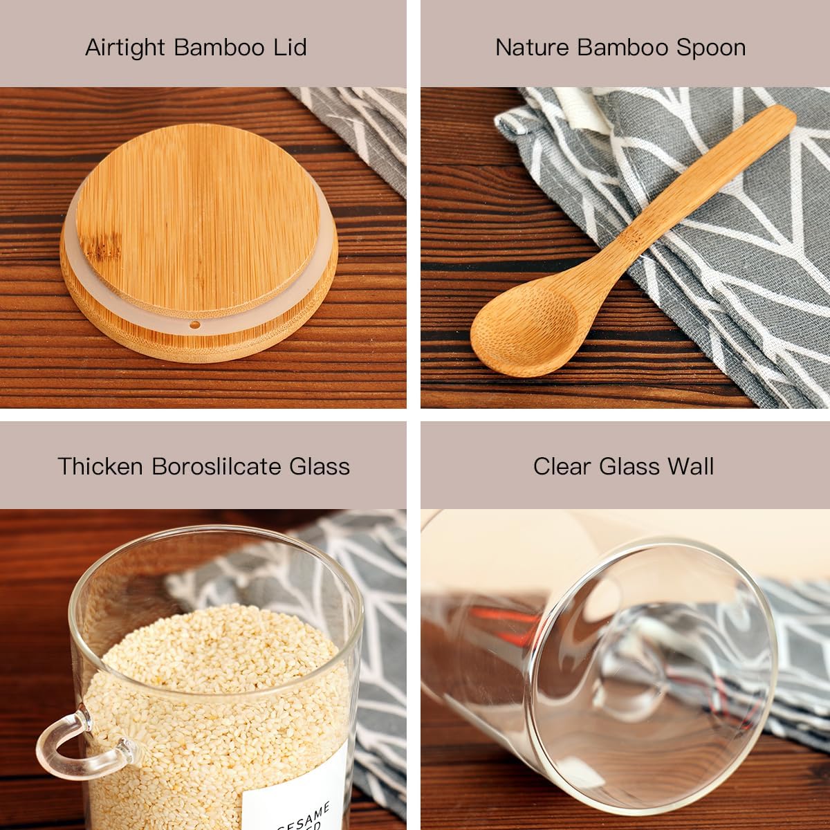 【DISHWASHER SAFE】The glass jars with bamboo lids and spoon is made of glass, and it is easy to wash, simply wash it under warm water or throw them in the dishwasher. The bamboo lid and spoon can be wiped with cloth.