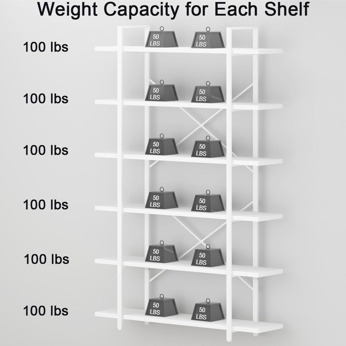 6 Tier Tall White Bookshelf, Industrial Modern Vertical Metal and Wood White Bookcases 6 Shelf,Farmhouse Open Large Storage Book Shelves & Display Book Shelf for Bedroom Living Room Office
