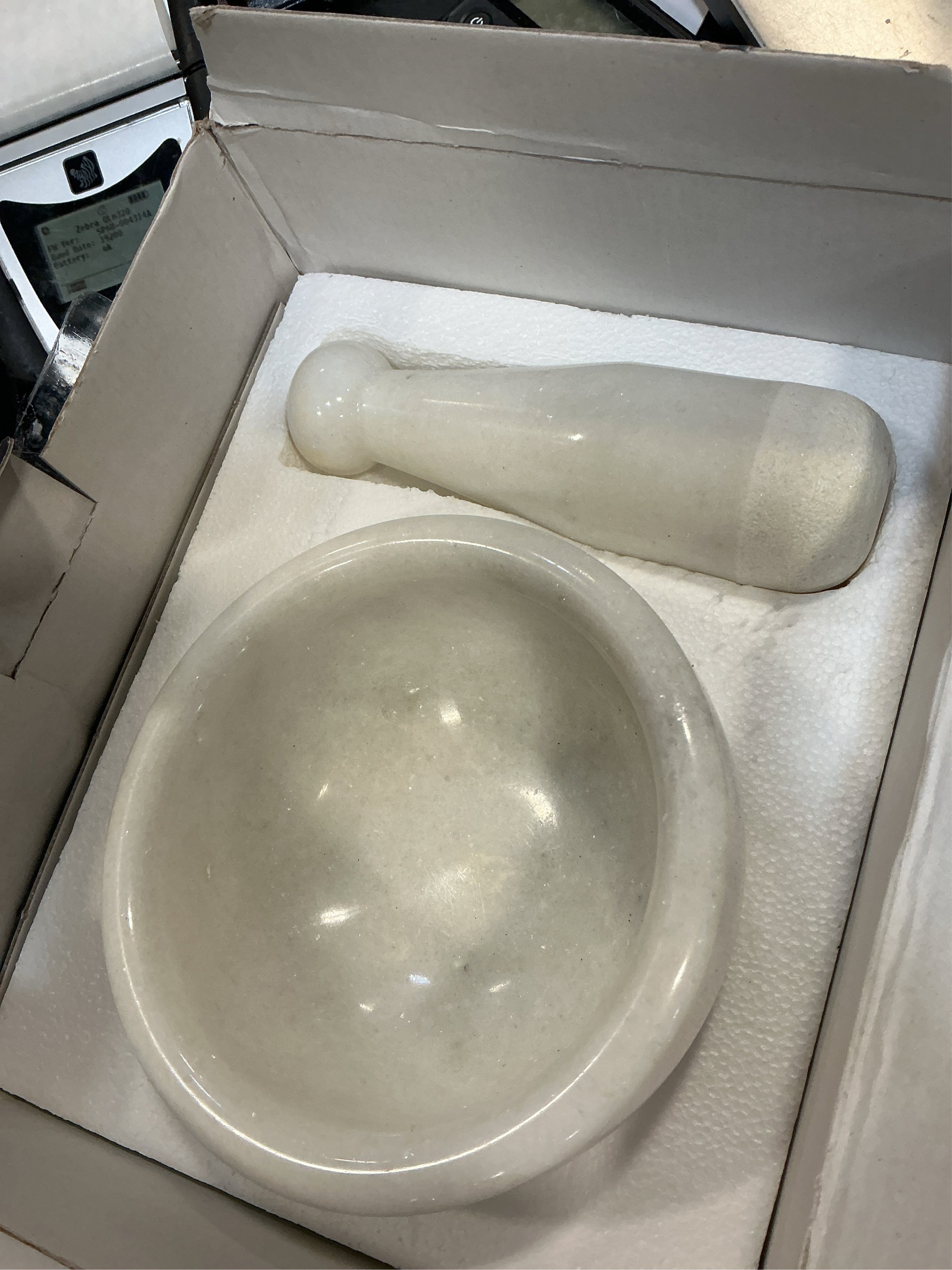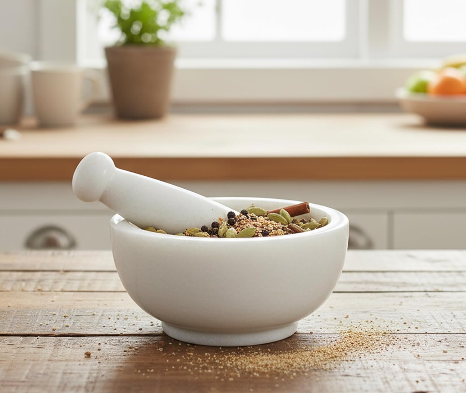 KLEO brings Hand-crafted luxury to redefine your home decor & utility. A kitchen essential Mortar and Pestle made out of Natural White Stone (BIG SIZE) in WHITE Color.