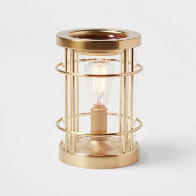 Keep your space smelling fresh without the hazards of a flame with this Edison Bulb Metal Scent Warmer from Threshold™. A soft halogen bulb creates a warm glow of light through the cutouts while acting as a safe heat source to melt the wax cubes. Crafted from metal in a bronze-tone finish, this metal and glass scent warmer is perfect for adding an elegant touch to your home while filling the air with a welcoming and clean aroma. Threshold™: Quality & Design / Casual classics for house and home.