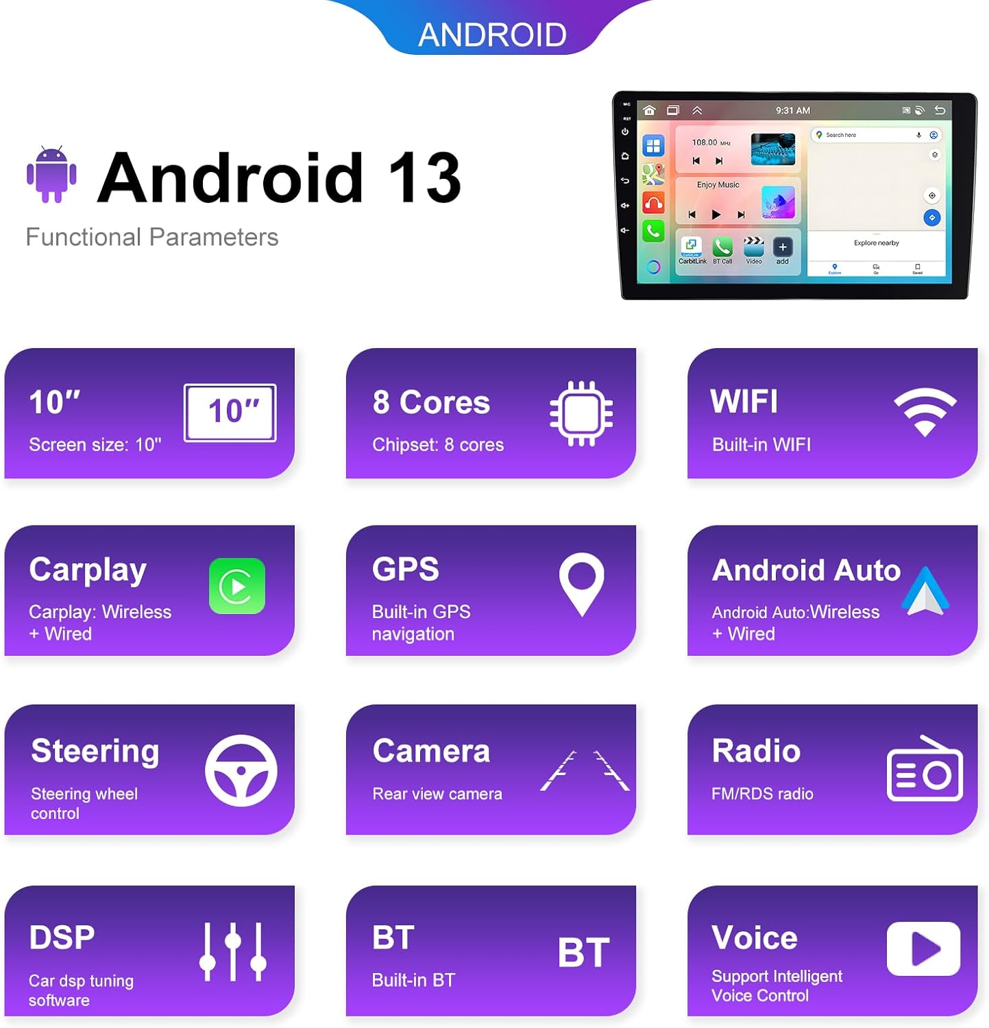【8 Core 6 128GB Android Car Radio Stereo】The double din Android car radio featuring the latest Android system and an 8-core CPU processor. With 6GB RAM & 128GB ROM. For compatibility confirmation, please inquire with us first