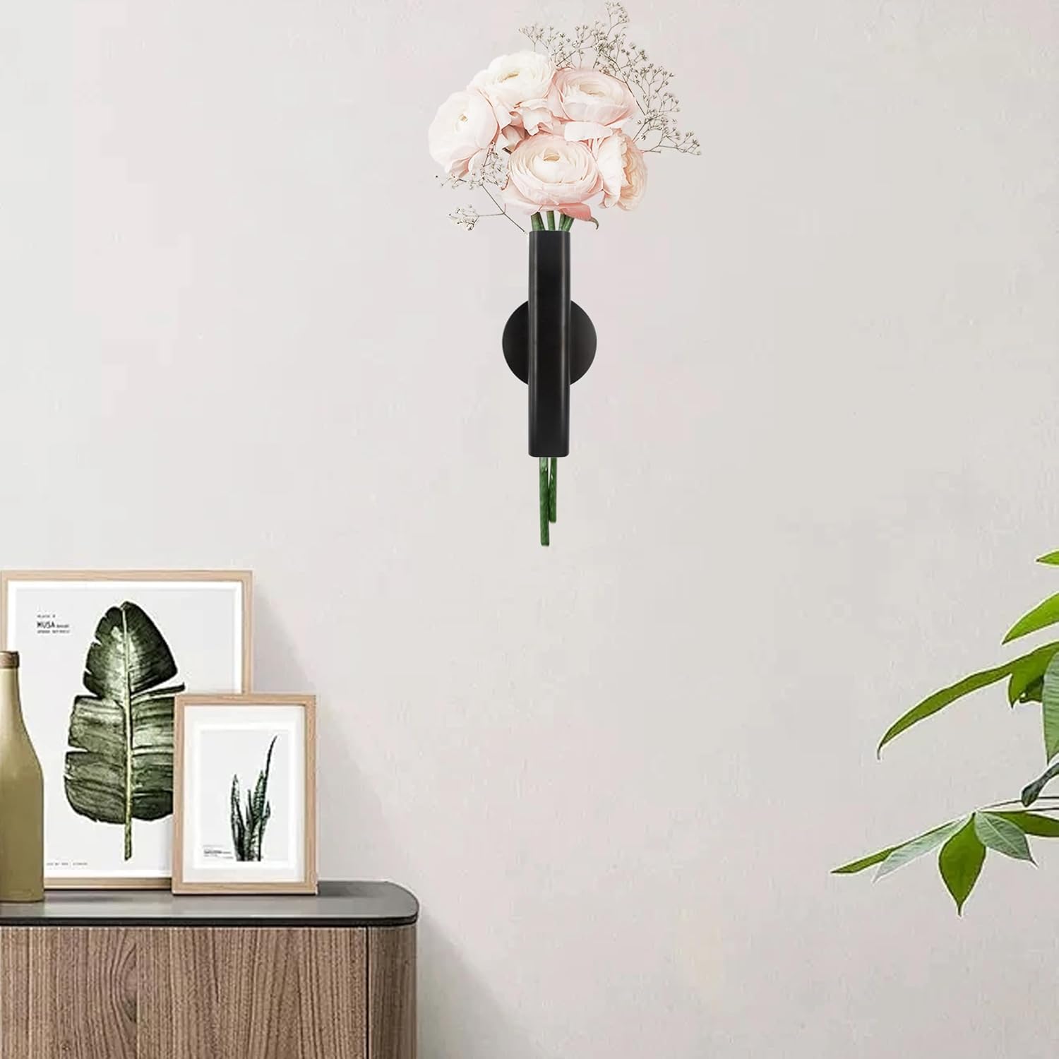 7" Wall-Mounted Flower Tube, Top/Bottom Open Vase, Wall Metal Flower Tube Decoration Holder for Flower Display, Home Office Living Room Bedroom Decoration with Adhesive Material, 2pcs(Black)