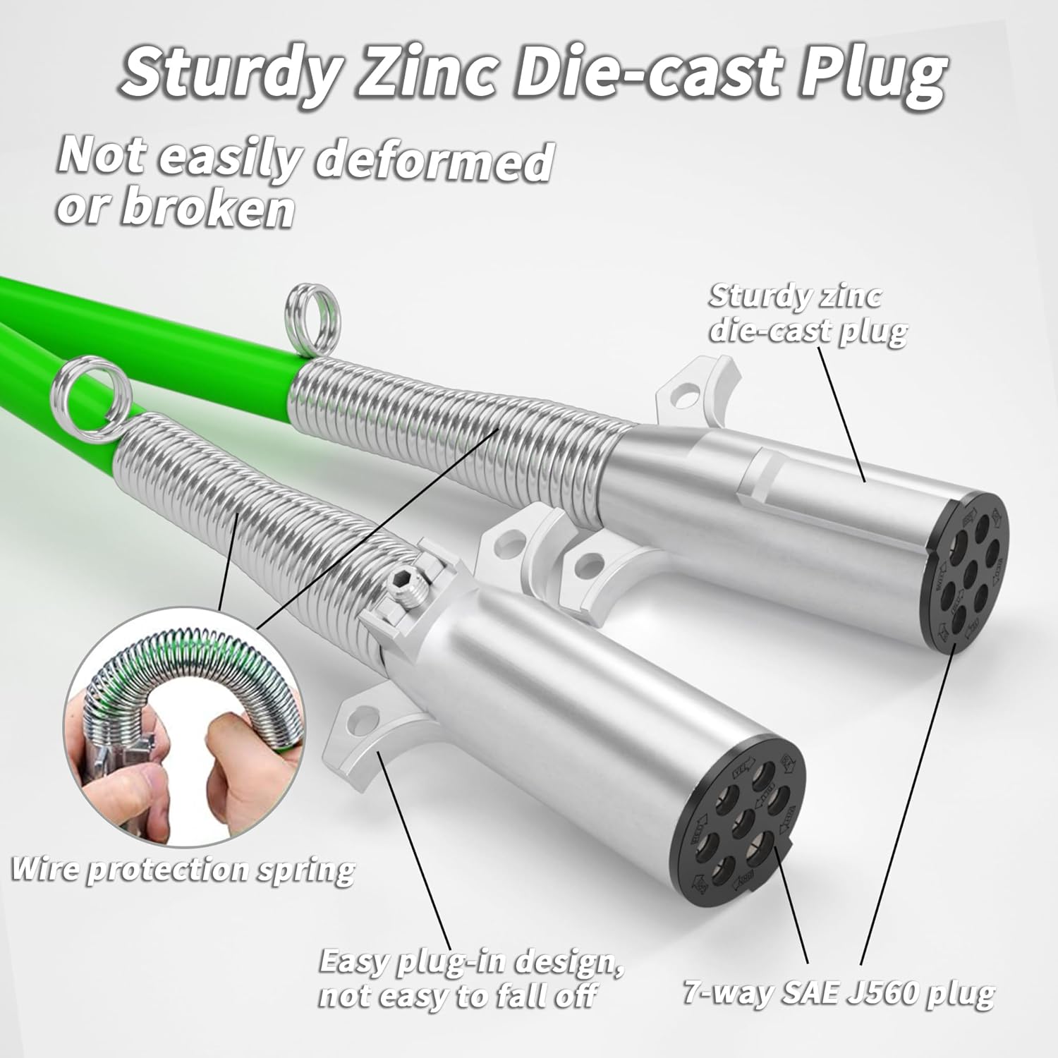 Reliable Connection: Both ends of the trailer wiring harness are protected by highly elastic stainless steel springs; The good elasticity can protect the 7-way trailer extension cord well and act as a buffer when installing and using the cord.
