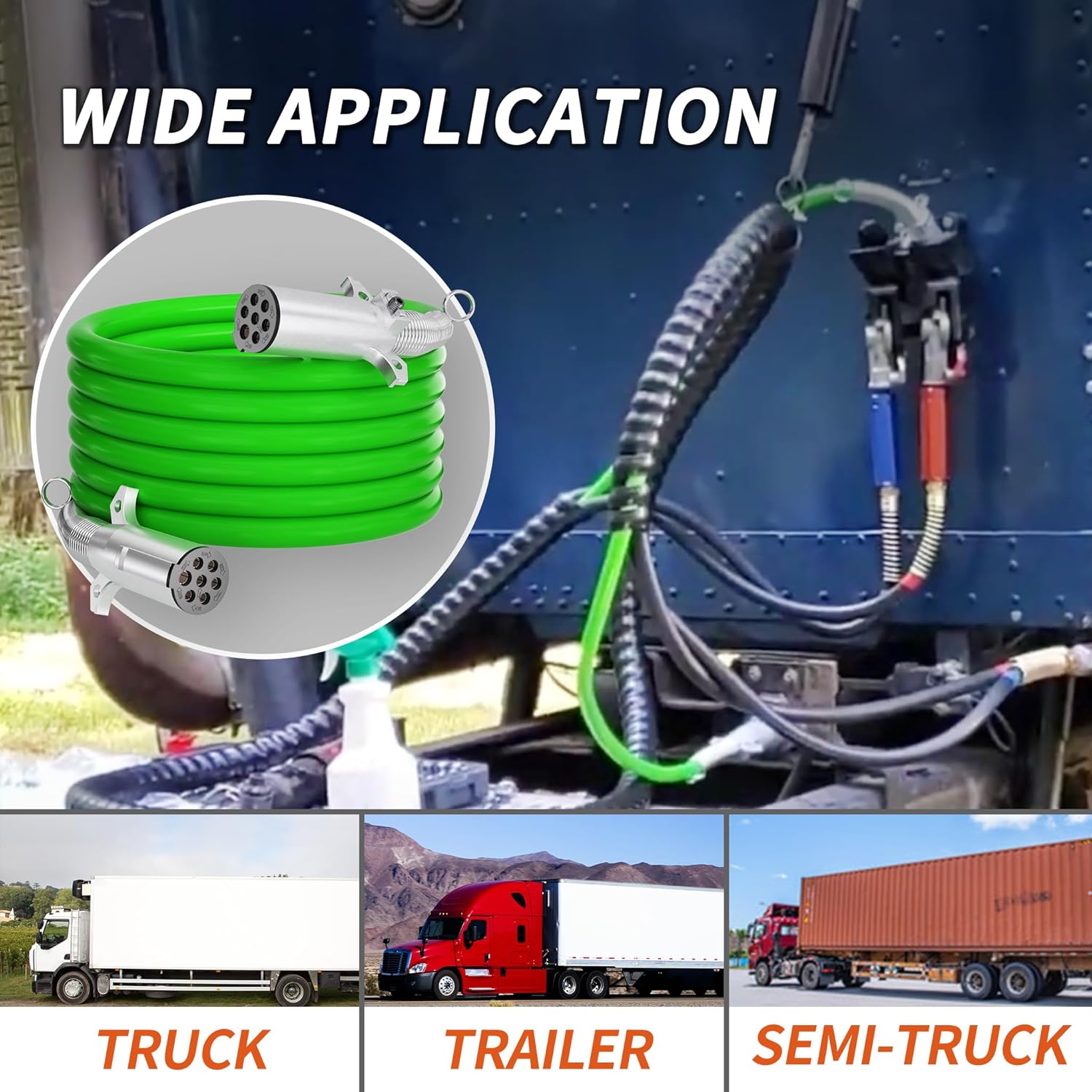 3. 7 Way Trailer Cord 12 FT ABS Heavey Duty, Flexible -85°F Cold Resistance Straight Electrical Power Cable Green for Semi Trailers Trucks Tractors, 4/12 2/10 1/8 Gauge Wire Cable