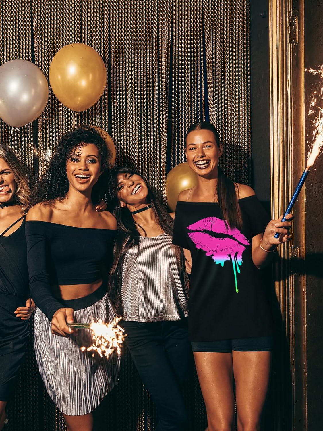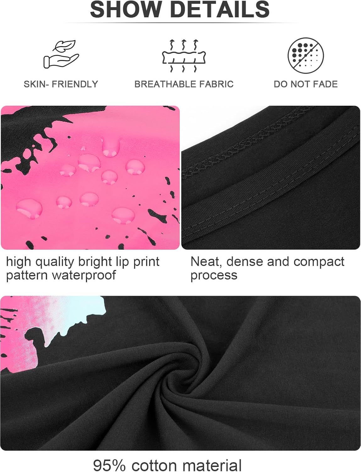 【High quality material】 -- 80s outfit for women have Featuring a relaxed, slouchy fit and high stretch material,The lip print is brightly colored and waterproof, the black fabric is 95% cotton, which does not fade after washing.