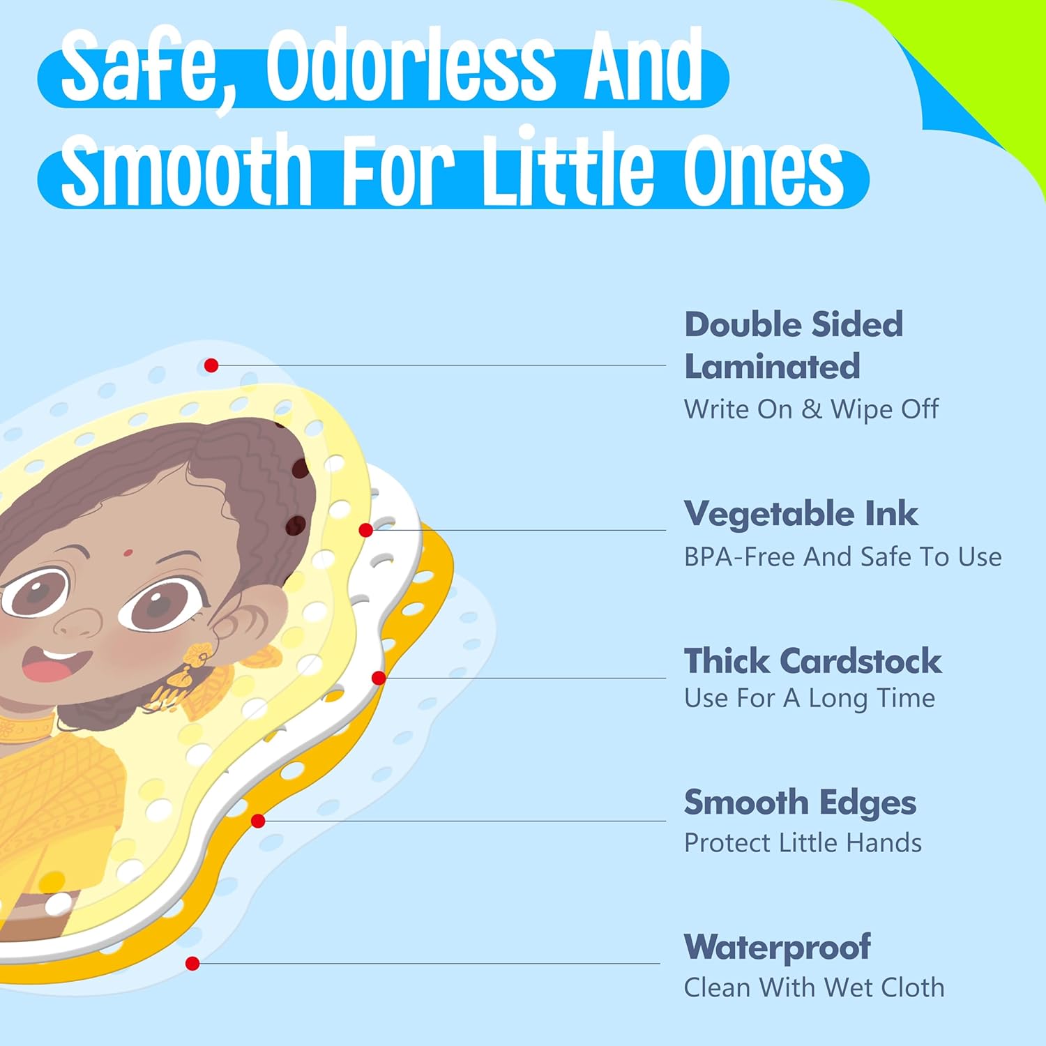 Double-Sided Printing: Each card features a lovely kid from different countries on the front, each child is depicted in their traditional attire, showing the diverse cultures. On the back of the card, there is a specific color along with its corresponding word written beneath it. Additionally, the card displays various objects or items that are associated with this color.