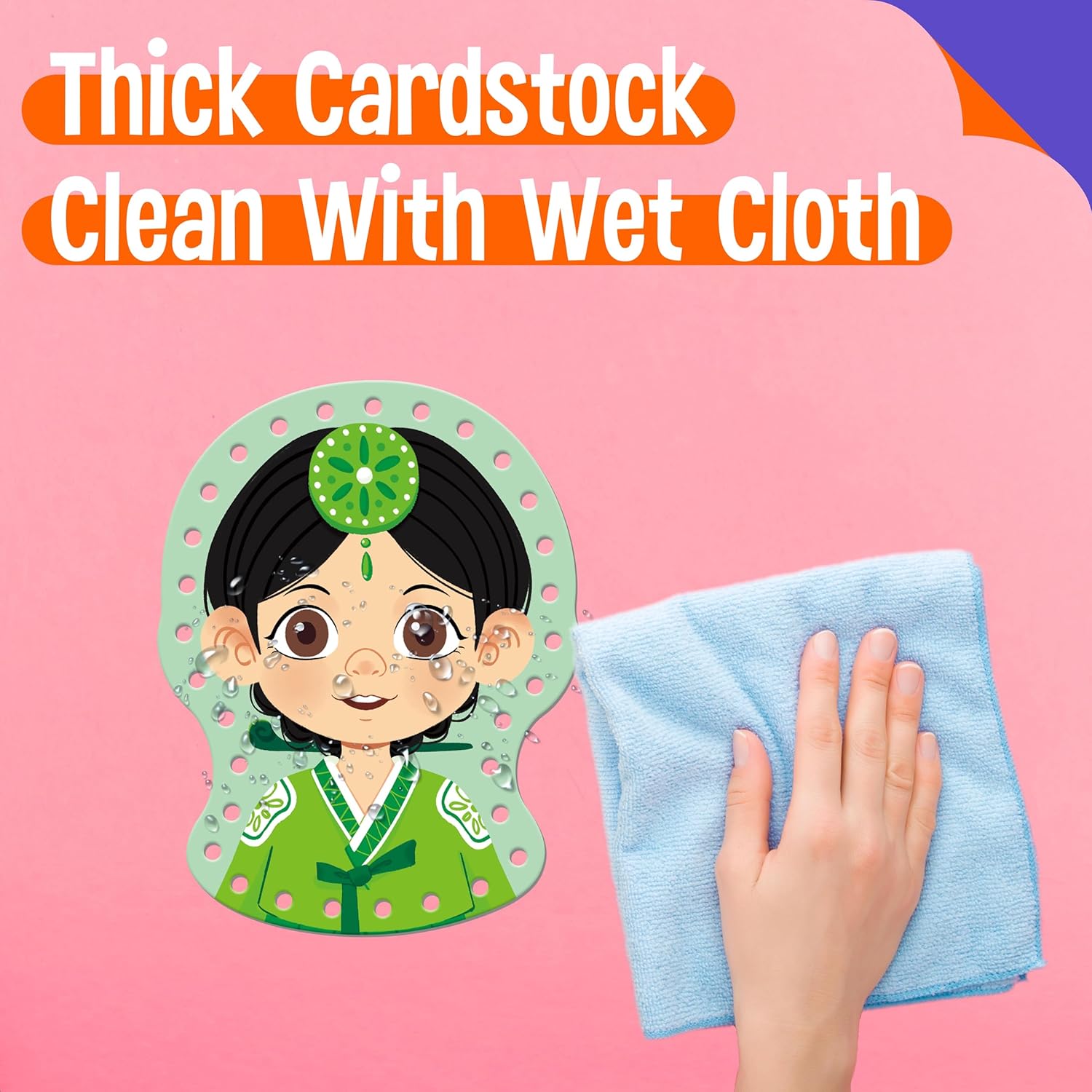 Cute Patterns & Smart Designs: The pattern covers cure children from different countries, like China, Korea, America, etc. The illustrations on cards are big, vivid and vibrant. The holes are clearly cut and easy for preschoolers to work with. The strings are easy for children to use and fit into the holes easily.