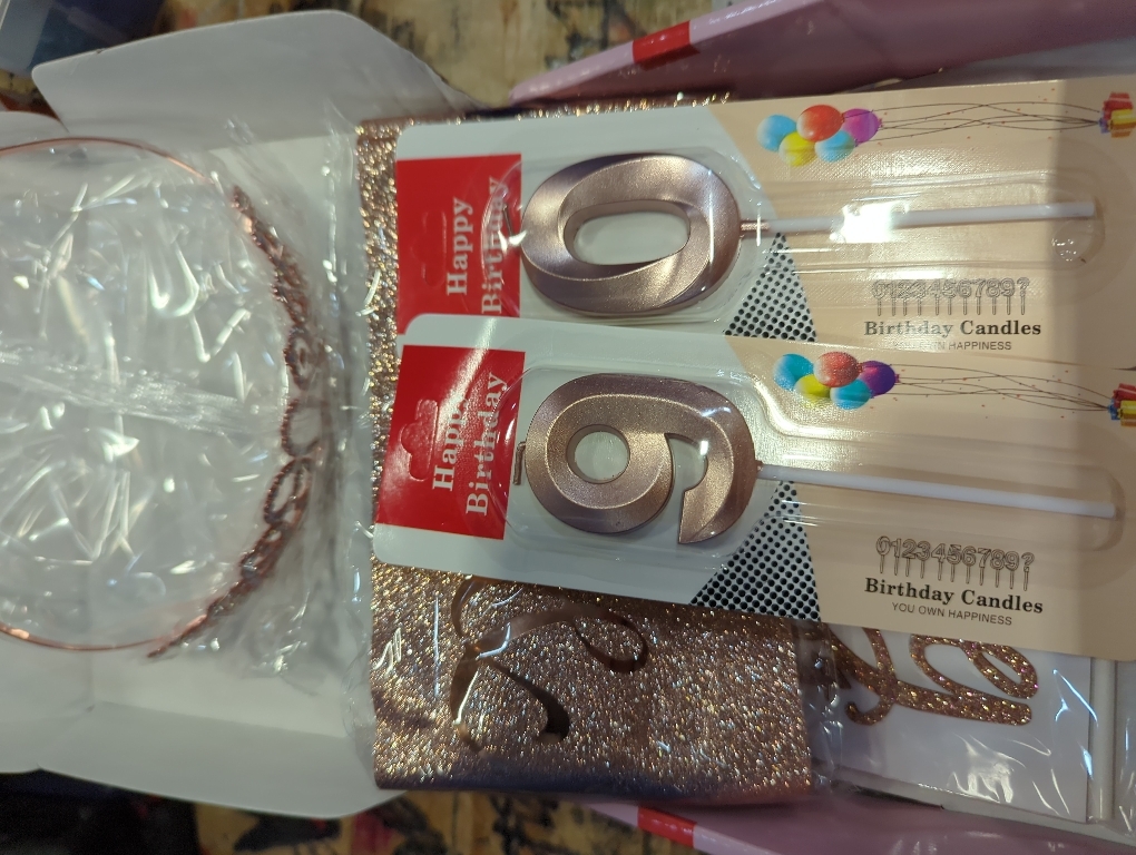 Candles and Birthday Cake topper: 2 pieces numeral candles in number 9 and 0 which are packaged in separate plastic boxes. A Rose Gold glittery Happy 90th Birthday cake topper is a funny choice for your party cakes. They are good to embellish your cake and cupcake. Bright glow for creating romantic atmosphere and adding much fun in your 90th birthday party.