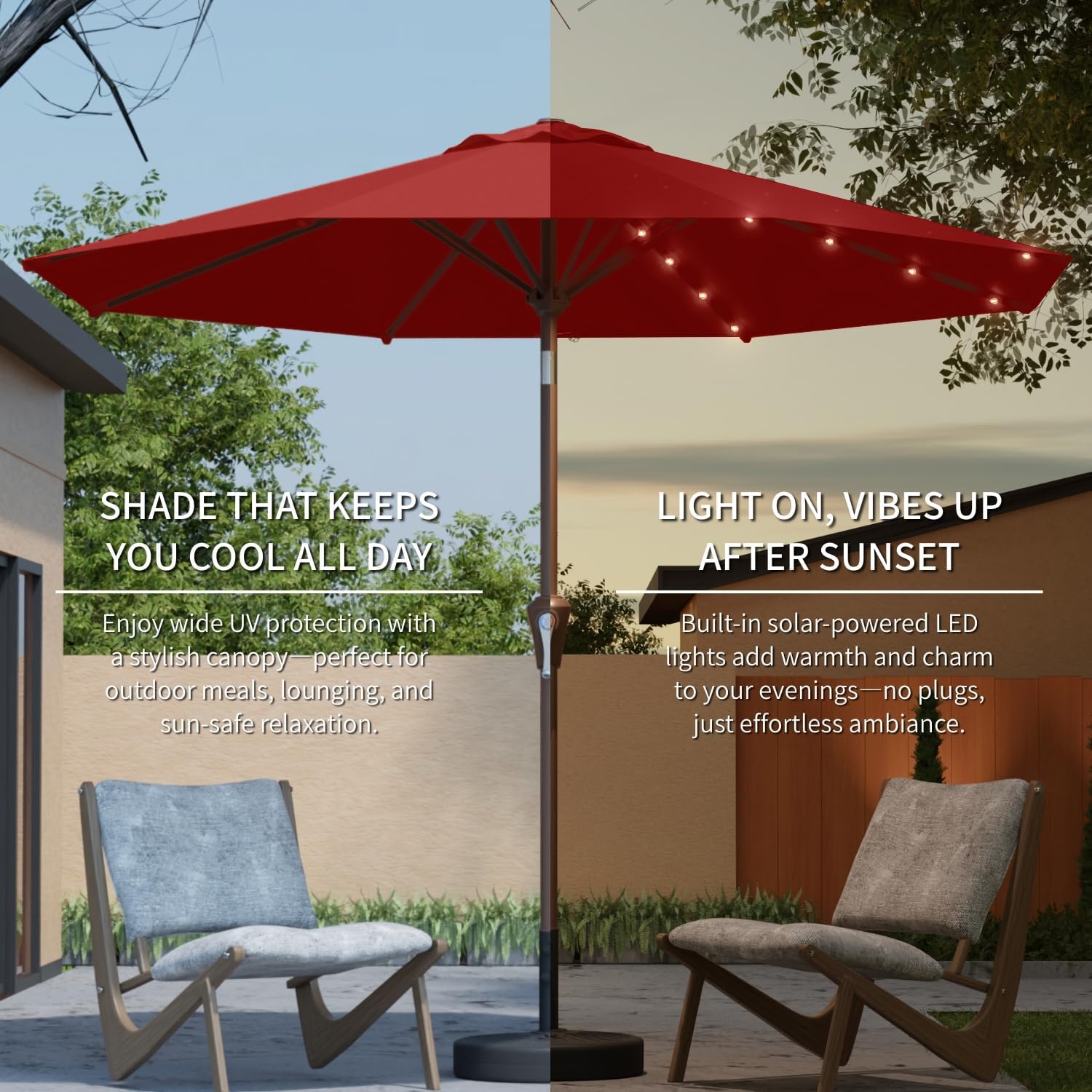9FT Solar Umbrella 32 LED Lighted Patio Umbrella Table Market Umbrella w/Tilt and Crank, UV-Resistant Outdoor Umbrella for Pool, Garden, Deck, Red