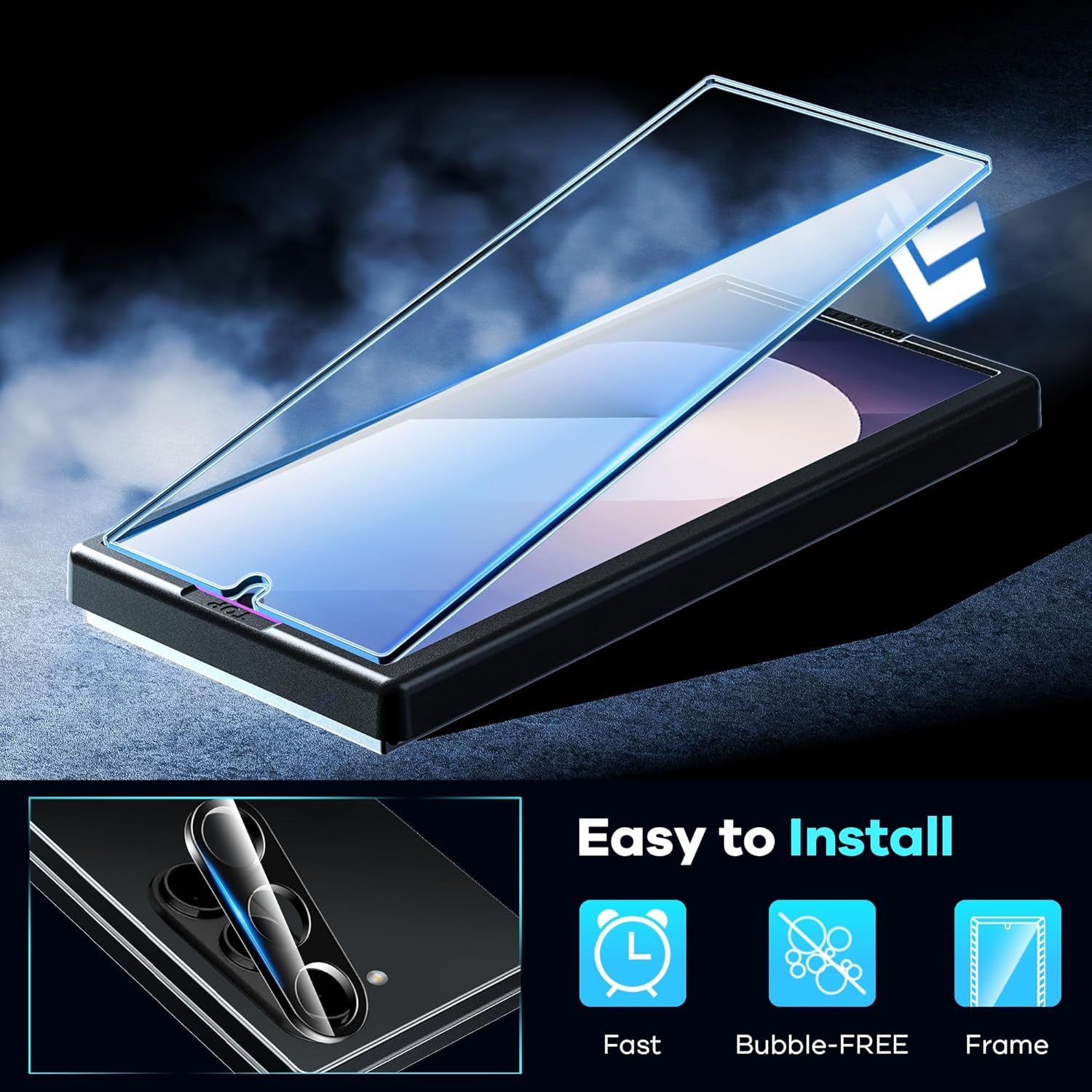 【Easier Installation】 Equipped with the alignment frame assists you to apply very simply and quickly without bubbles. You can watch the installation video from this product detail page ( the last image of the product )
