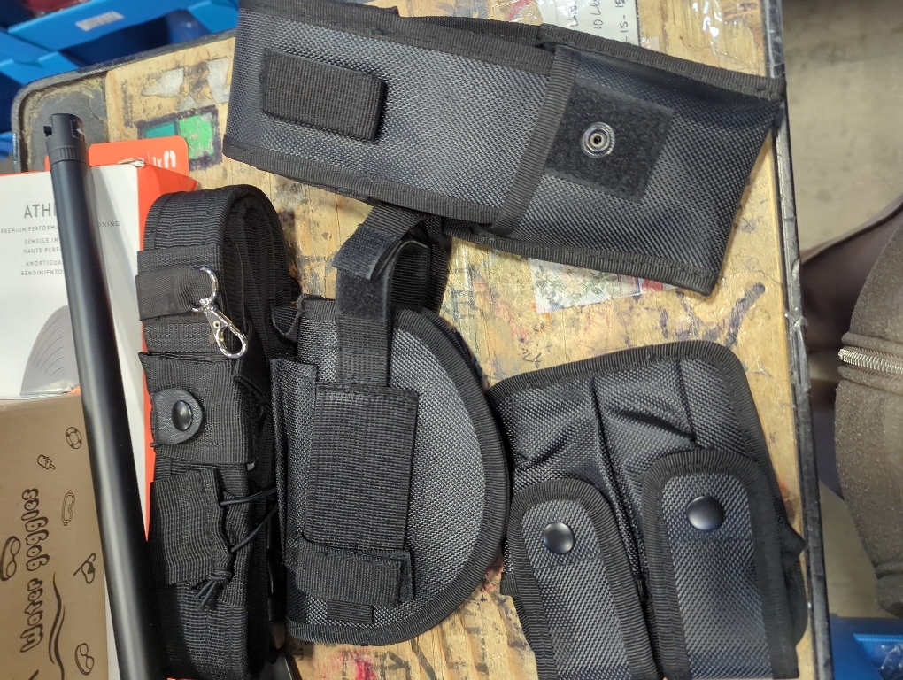 【6 in 1 Law Enforcement Duty Belts with Holster】 6 in 1 security hunting utility belts and bags: one tactical black belt with 5 various multifunctional component tactical holster pouches bags,including flashlight pouch, pistol pouch, rope case, hand cuff hoster, baton holder.