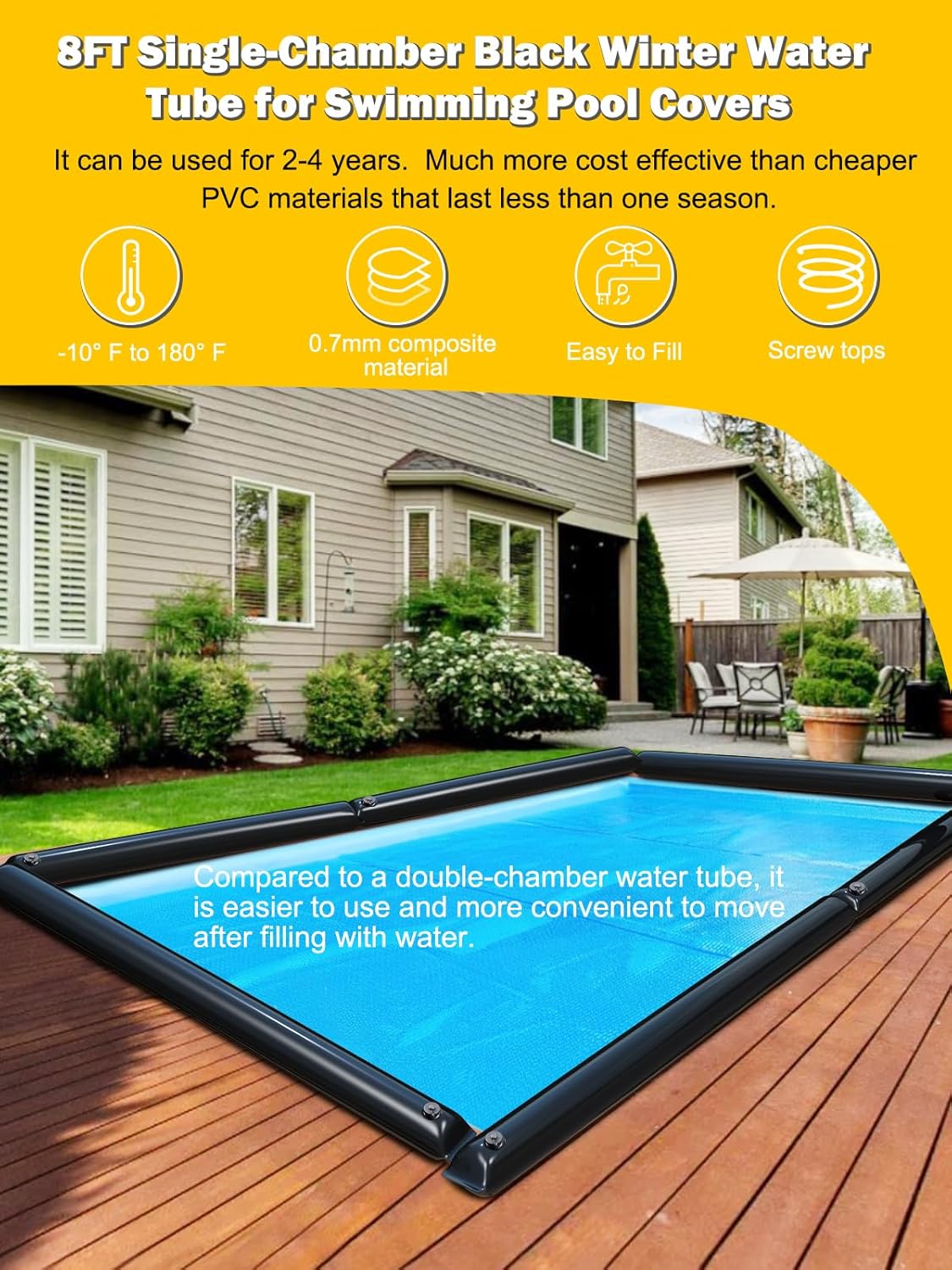 Abimars 0.7mm Thicker Black Winter Water Tube for Swimming Pool Covers, 10 Pack 8 FT Water Weight Bags for Pool Side, Three-Layer Composite Material