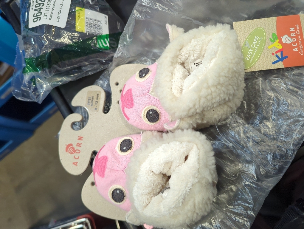 Double layer fleece polyester fleece detailing to make each slipper look like a little lamb or baby bunny.